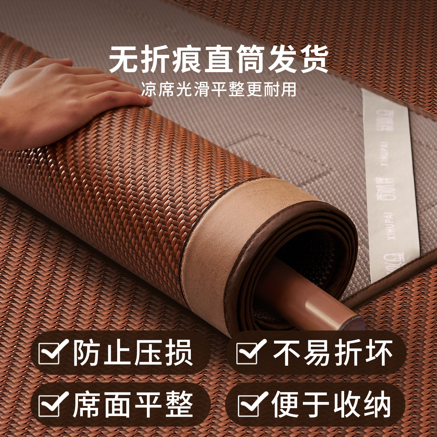 席之雅夏季双面凉席裸睡可折叠席子春夏两用冰丝藤席家用爆款草席