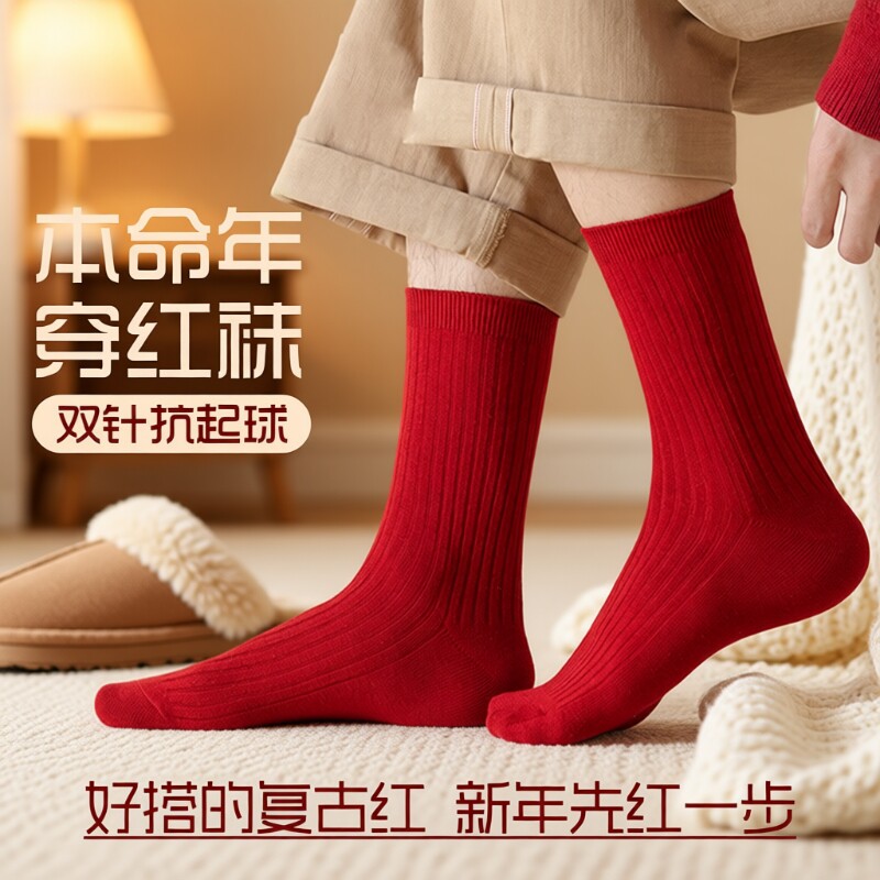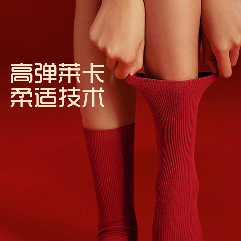 2026属马年红袜子男女款中筒大红色结婚情侣新年长筒袜防臭抗菌