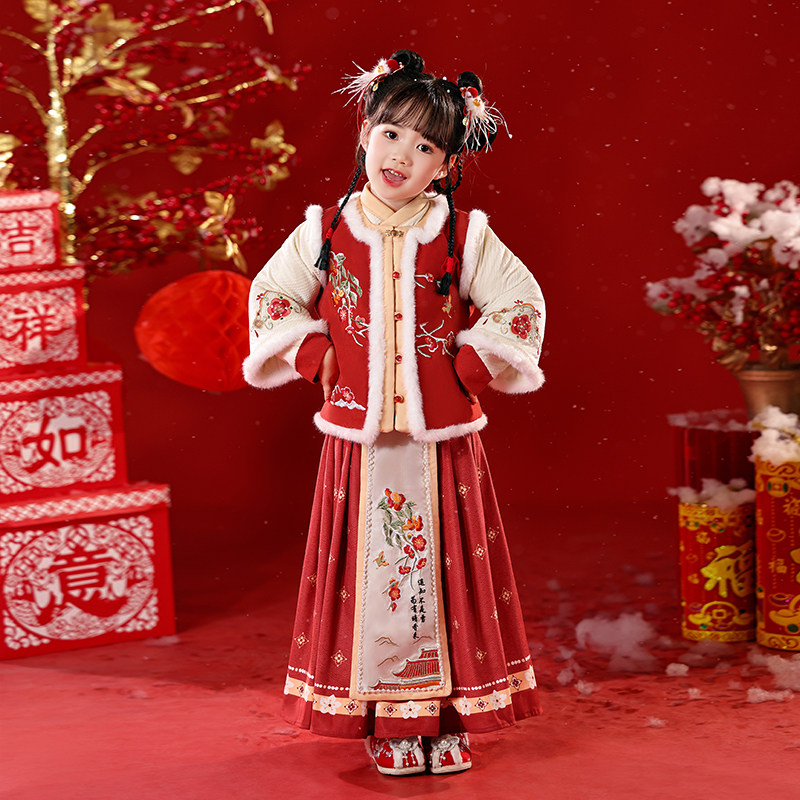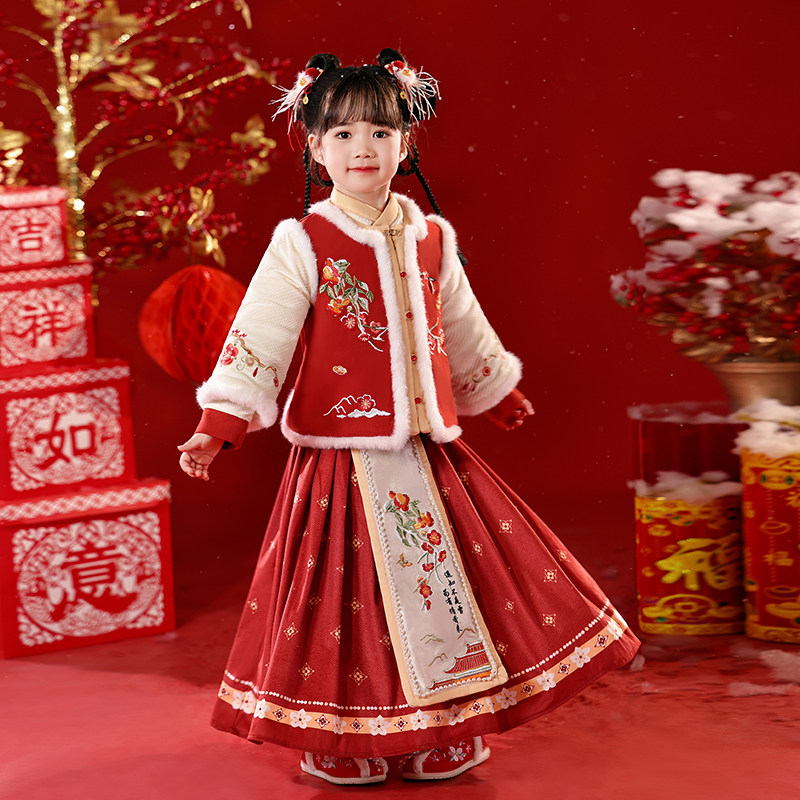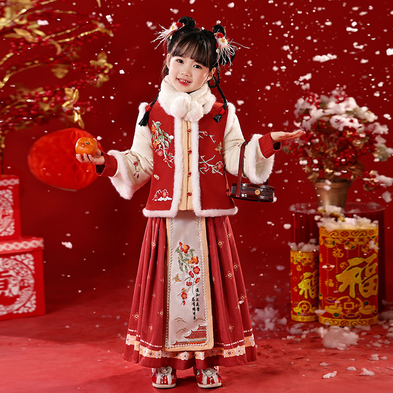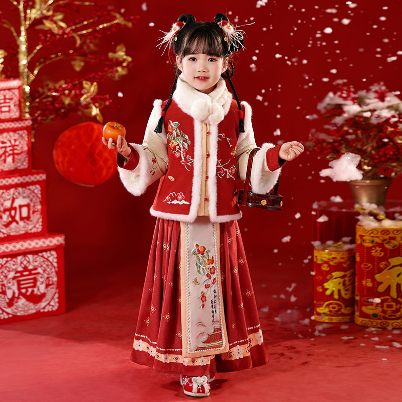 年衣童装新中式女童马面裙衬衫儿童秋冬汉服唐装古装马甲国演出服