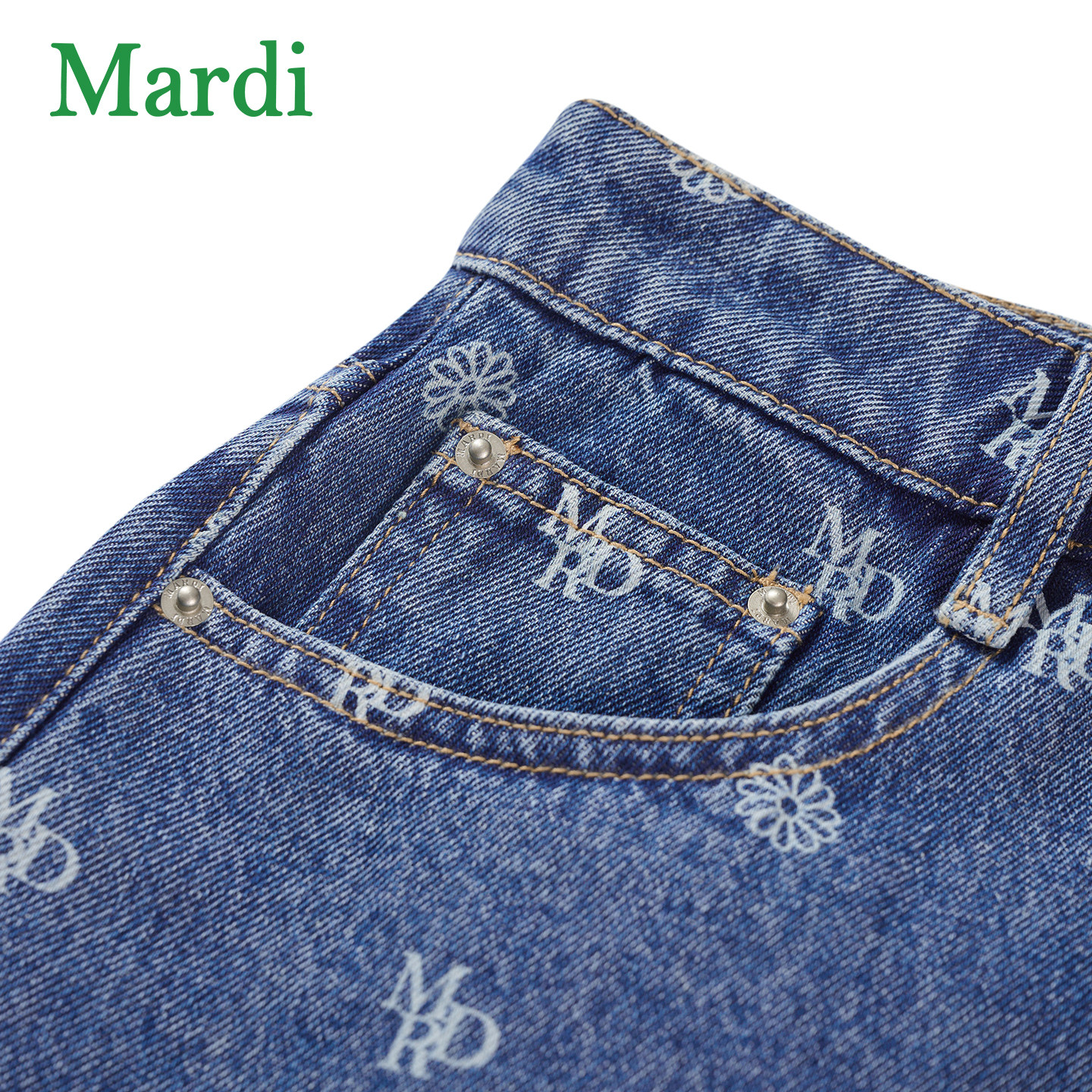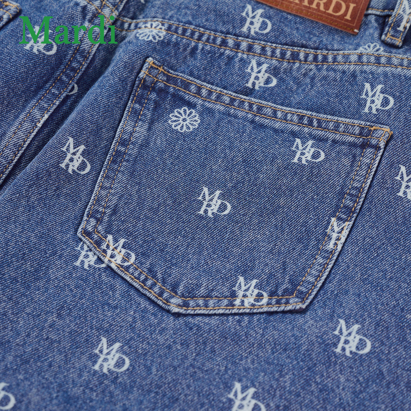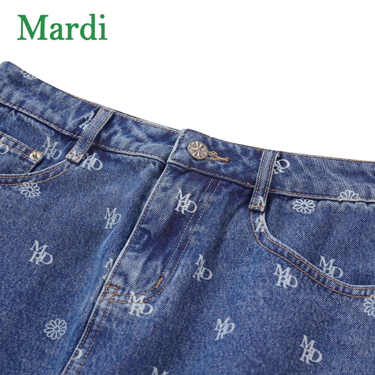 MARDI牛仔风A字半身裙女中长款蓝色字母时尚百搭休闲半裙中腰