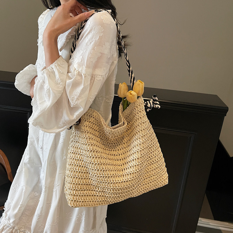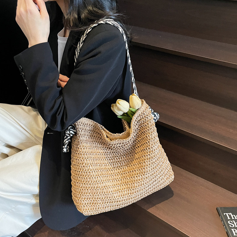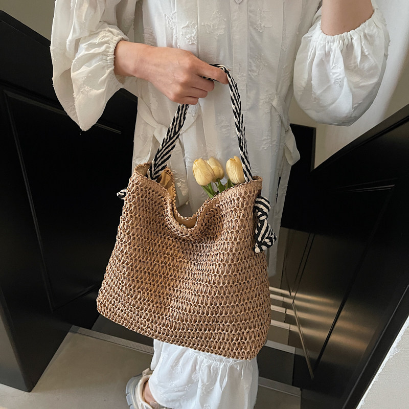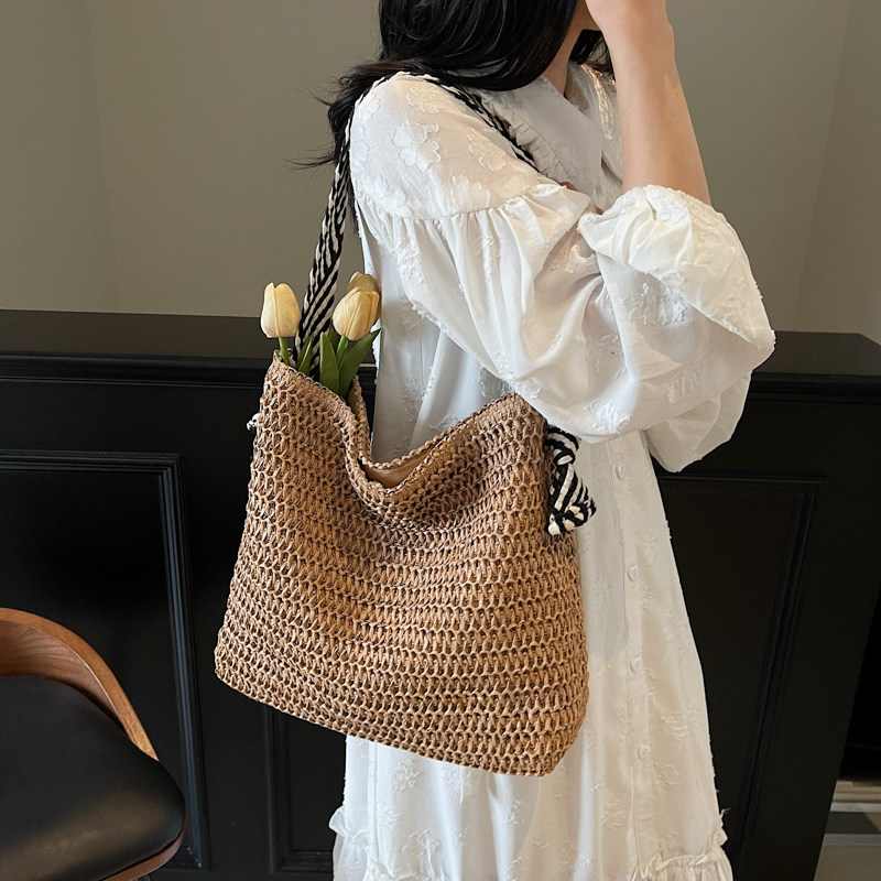 慵懒风大容量民族风包包女夏海边度假编织包草编宽肩带通勤托特包