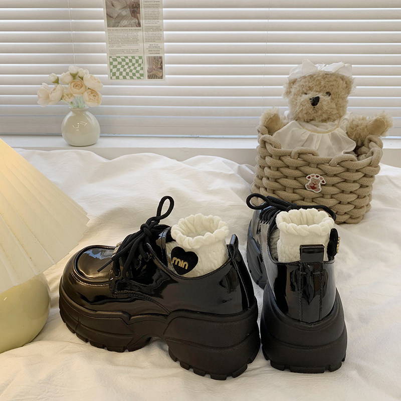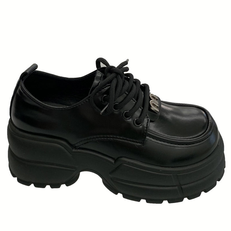 黑色厚底松糕小皮鞋女2026春季复古英伦学院风百搭矮子乐增高单鞋