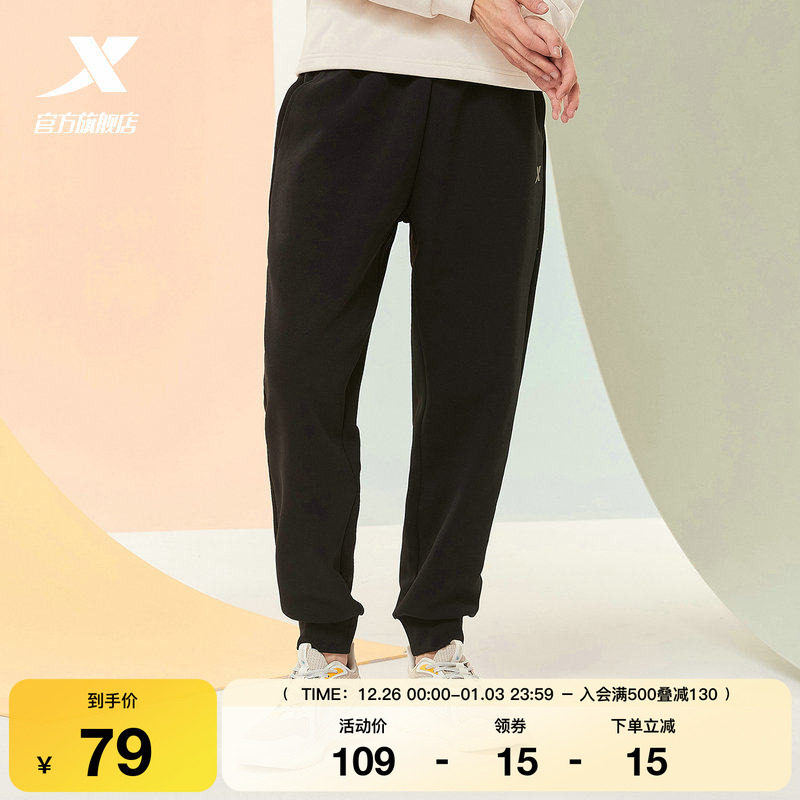特步运动裤男裤春秋卫裤男士宽松针织长裤束脚裤直筒官方休闲裤子