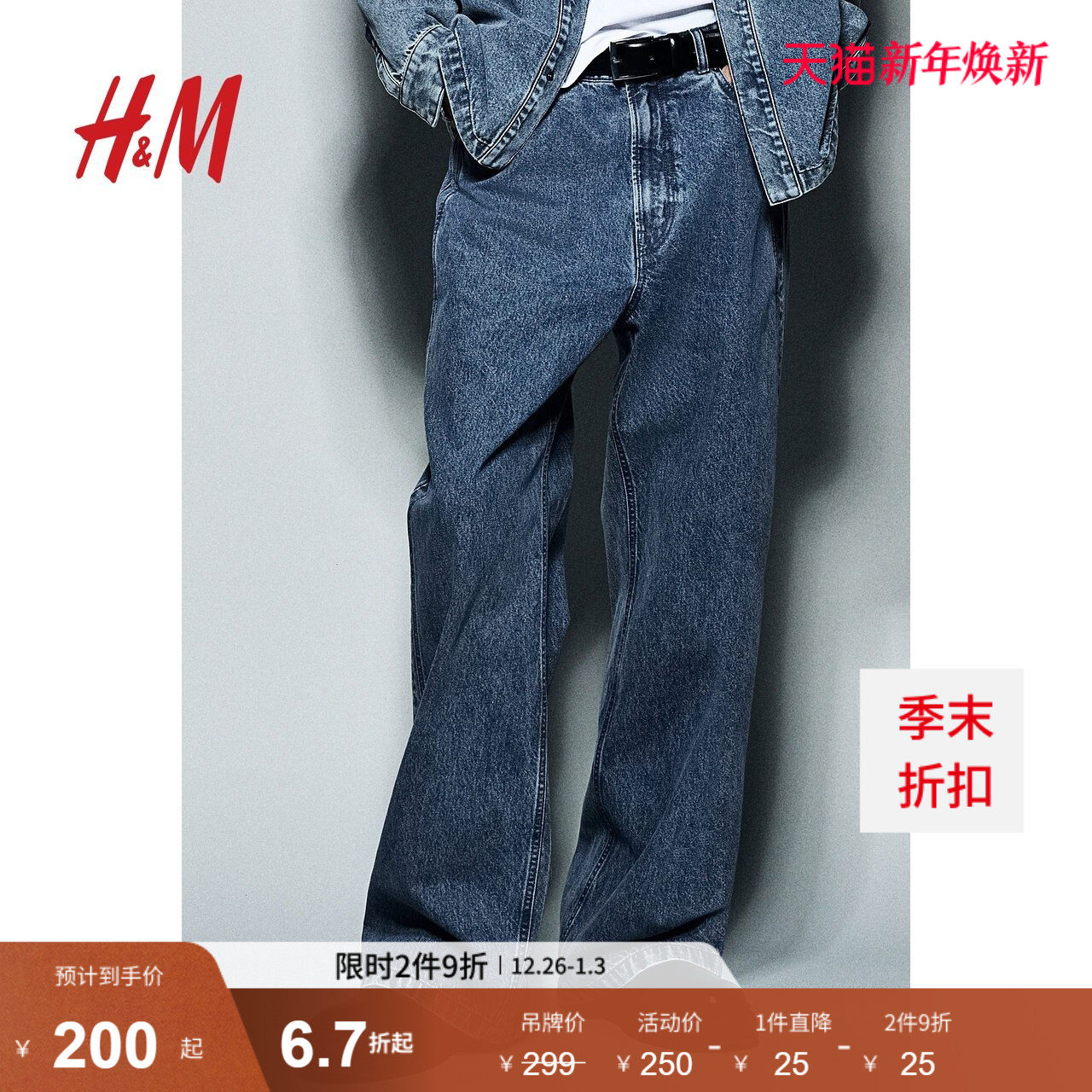 HM男装牛仔裤2025年冬季新款超宽松美式休闲休闲阔腿裤1265251