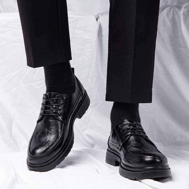 【小牛皮】青润chioryn袋鼠鞋男黑色真皮增高厚底休闲通勤风皮鞋