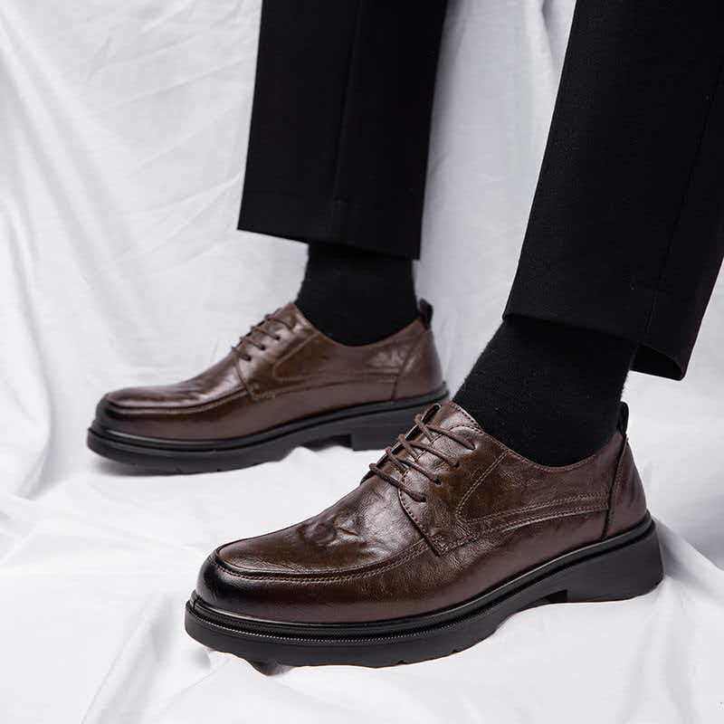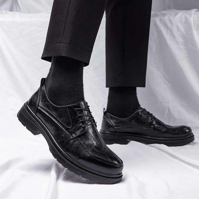 皮鞋男款高级感厚底增高英伦通勤大头德比鞋男冬季新款低帮马丁靴
