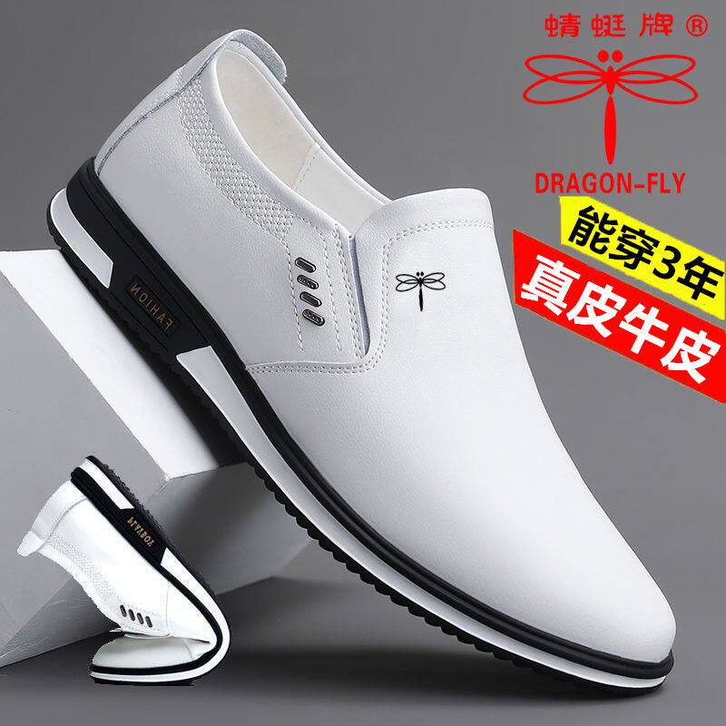 蜻蜓牌真皮男士皮鞋男款冬季2025新款休闲男鞋内增高透气小白鞋潮