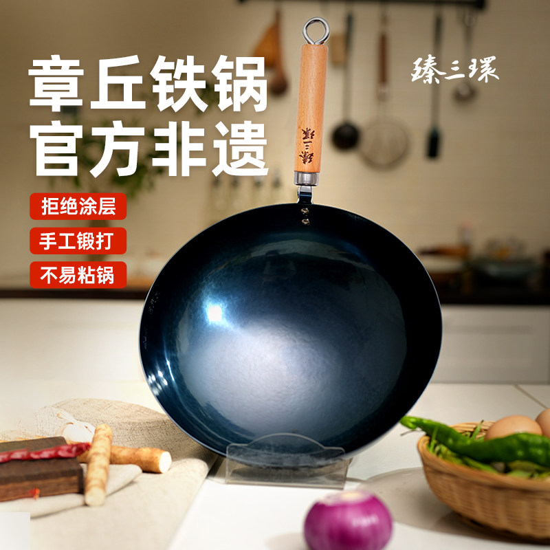 【k姐推荐】臻三环章丘铁锅正品手工锻打老式铁锅无涂层不易粘锅