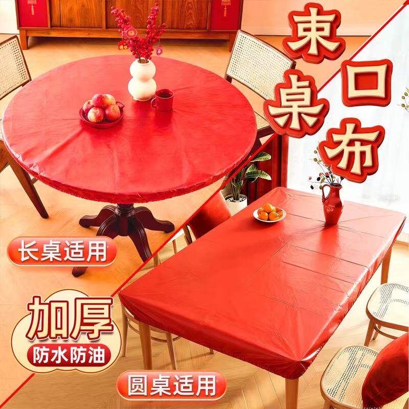 加厚束口一次性桌布桌套松紧过年免洗喜庆特厚防水防油圆桌餐桌
