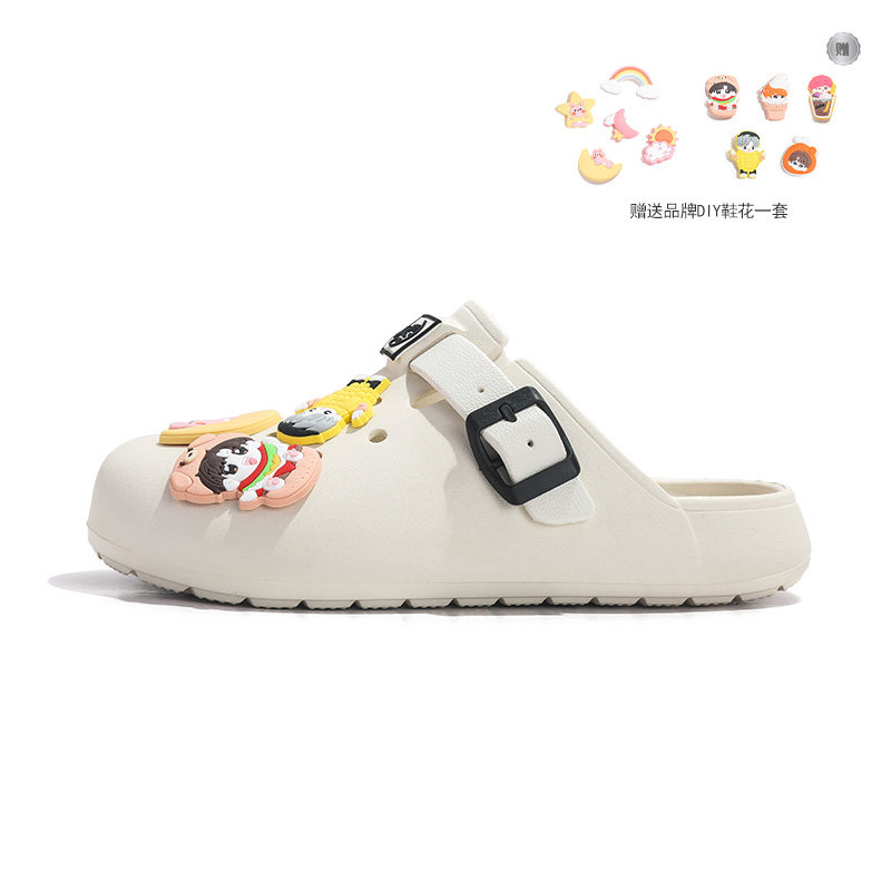 白色洞洞鞋女款夏季外穿2024新款厚底增高凉鞋防滑沙滩包头半拖鞋