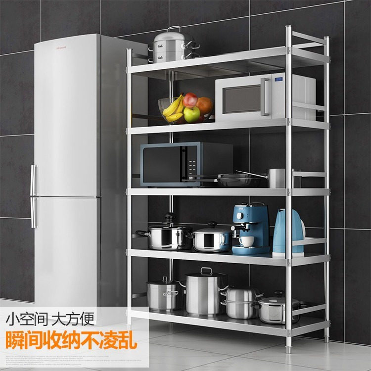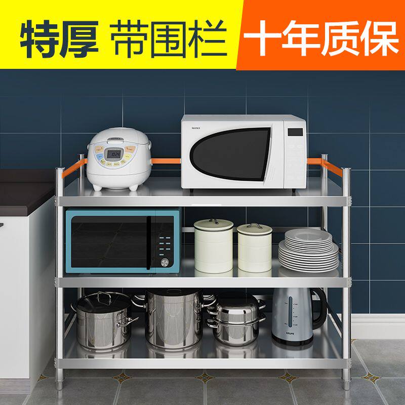 不锈钢厨房置物架落地3多层放锅架子4微波炉烤箱家用储物收纳货架