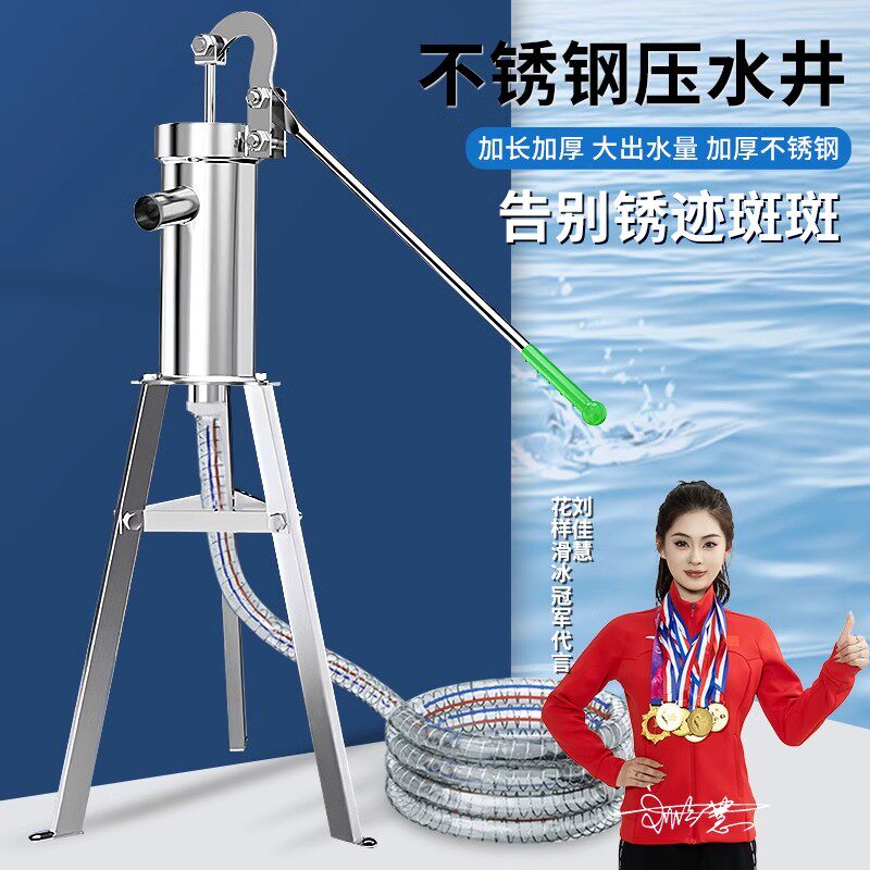 农村老式压水井头手动抽水泵压井头手压泵不锈钢手摇抽水打水神器