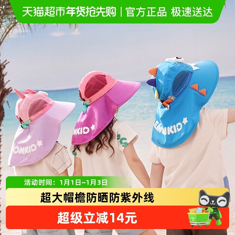 儿童防晒帽宝宝遮阳帽防紫外线男孩女童太阳帽大帽檐夏季渔夫帽子