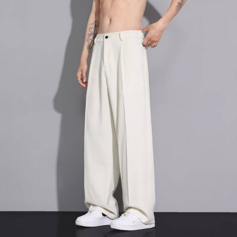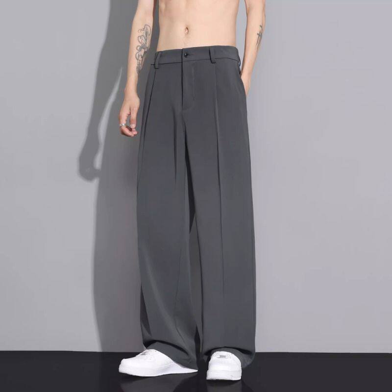 冰丝裤子男士夏季薄款宽松垂坠感直筒西装裤阔腿小西裤休闲长裤子