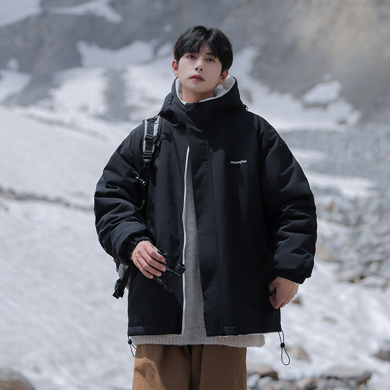 啄木鸟冲锋棉服外套男士秋冬季宽松加厚男棉衣服保暖连帽夹克棉袄