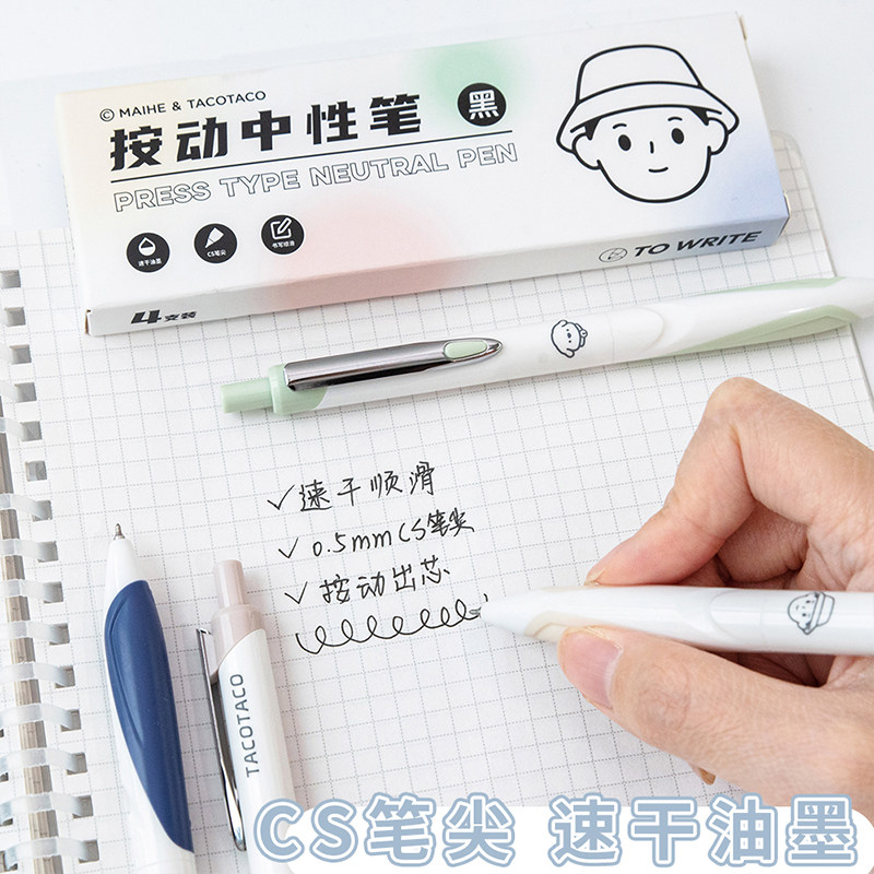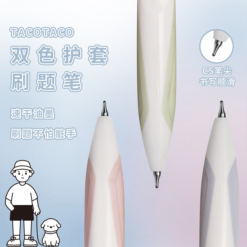TACOTACO双色护套刷题笔CS笔尖按动中性笔简约文字控ST头速干刷题笔高颜值签字笔