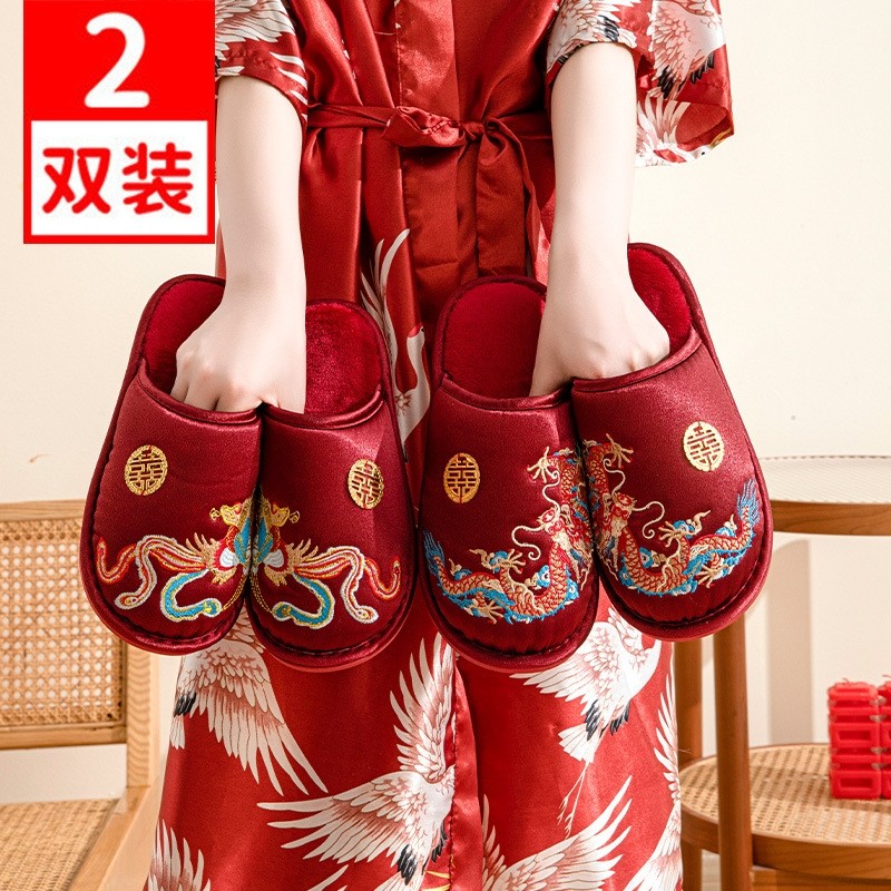 买一送一结婚棉拖鞋秋冬红色新婚高级感喜庆情侣婚庆室内拖鞋一对