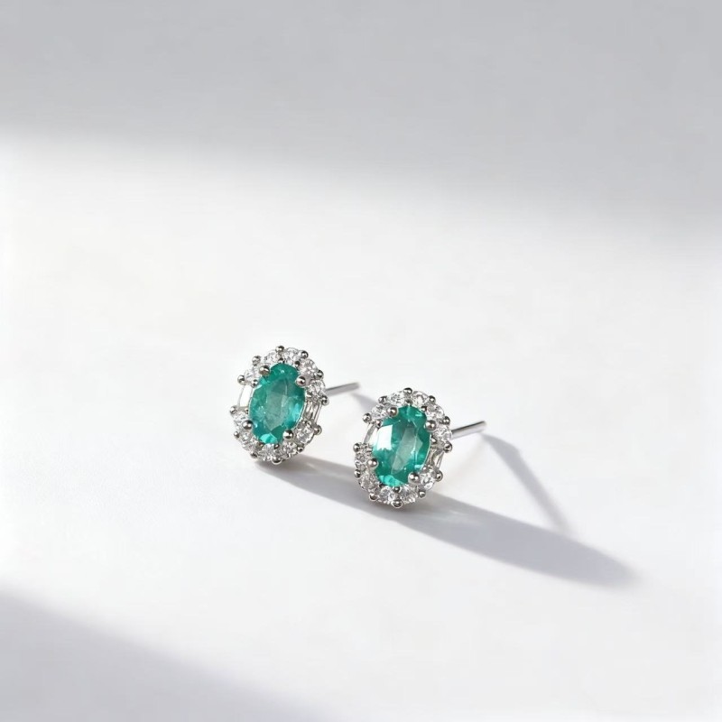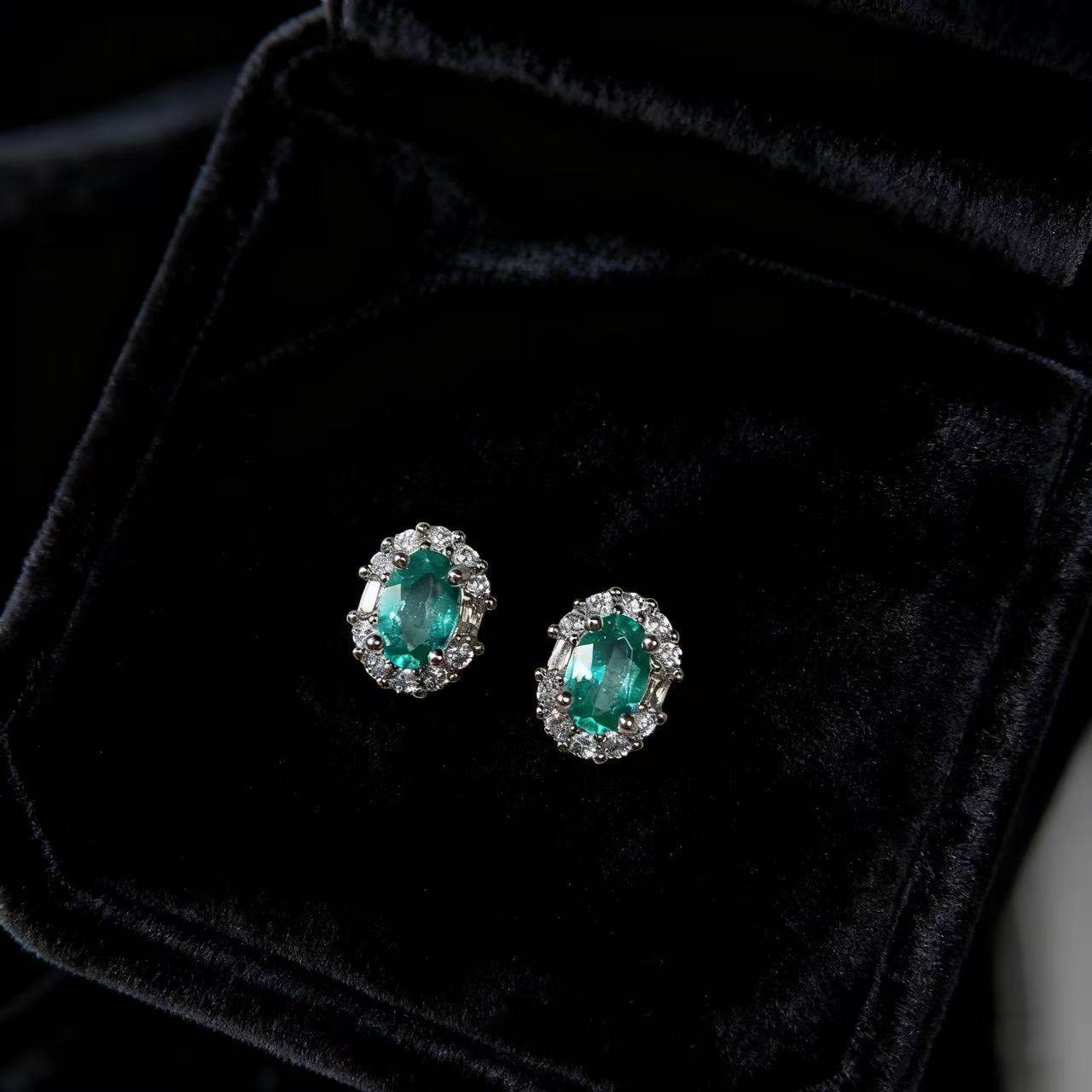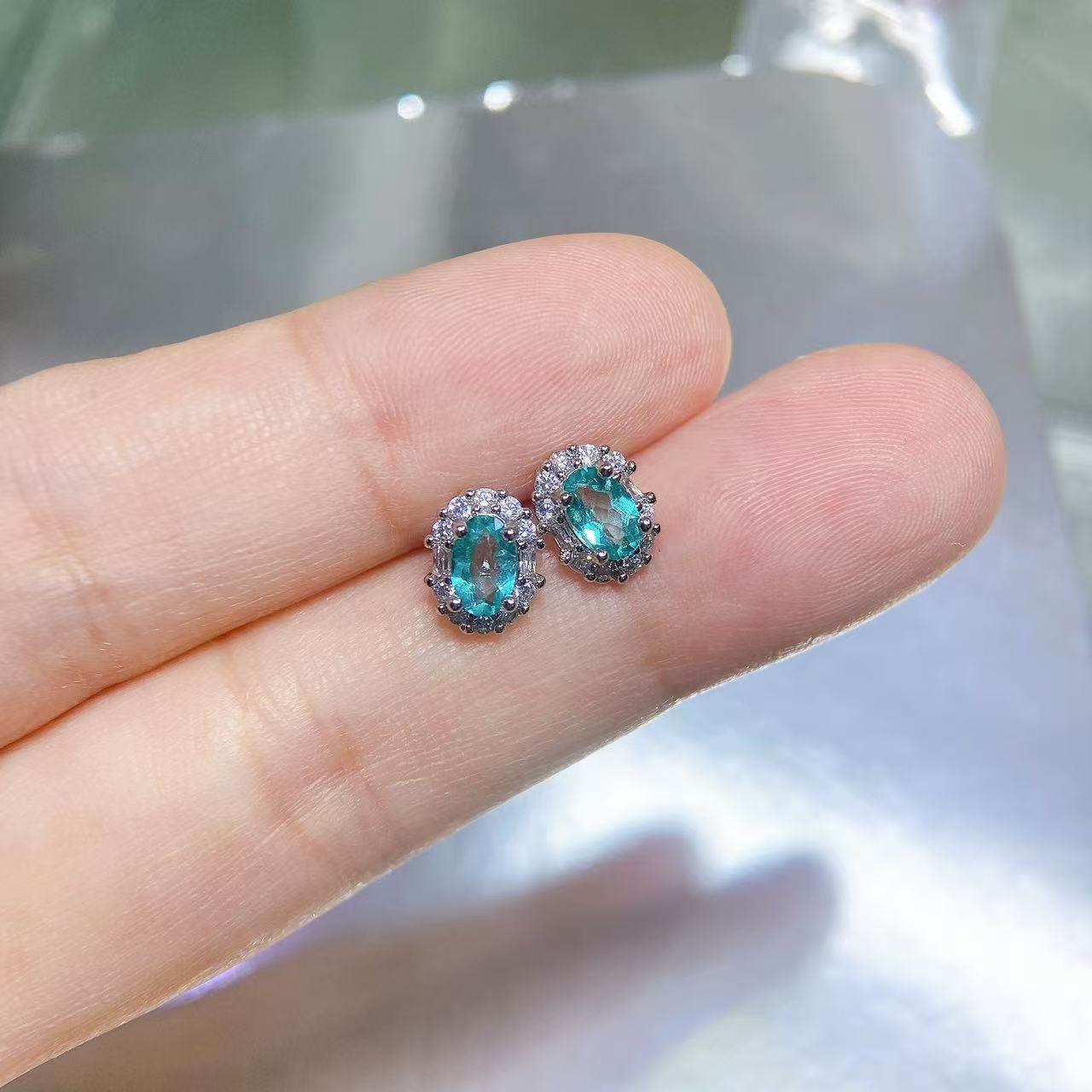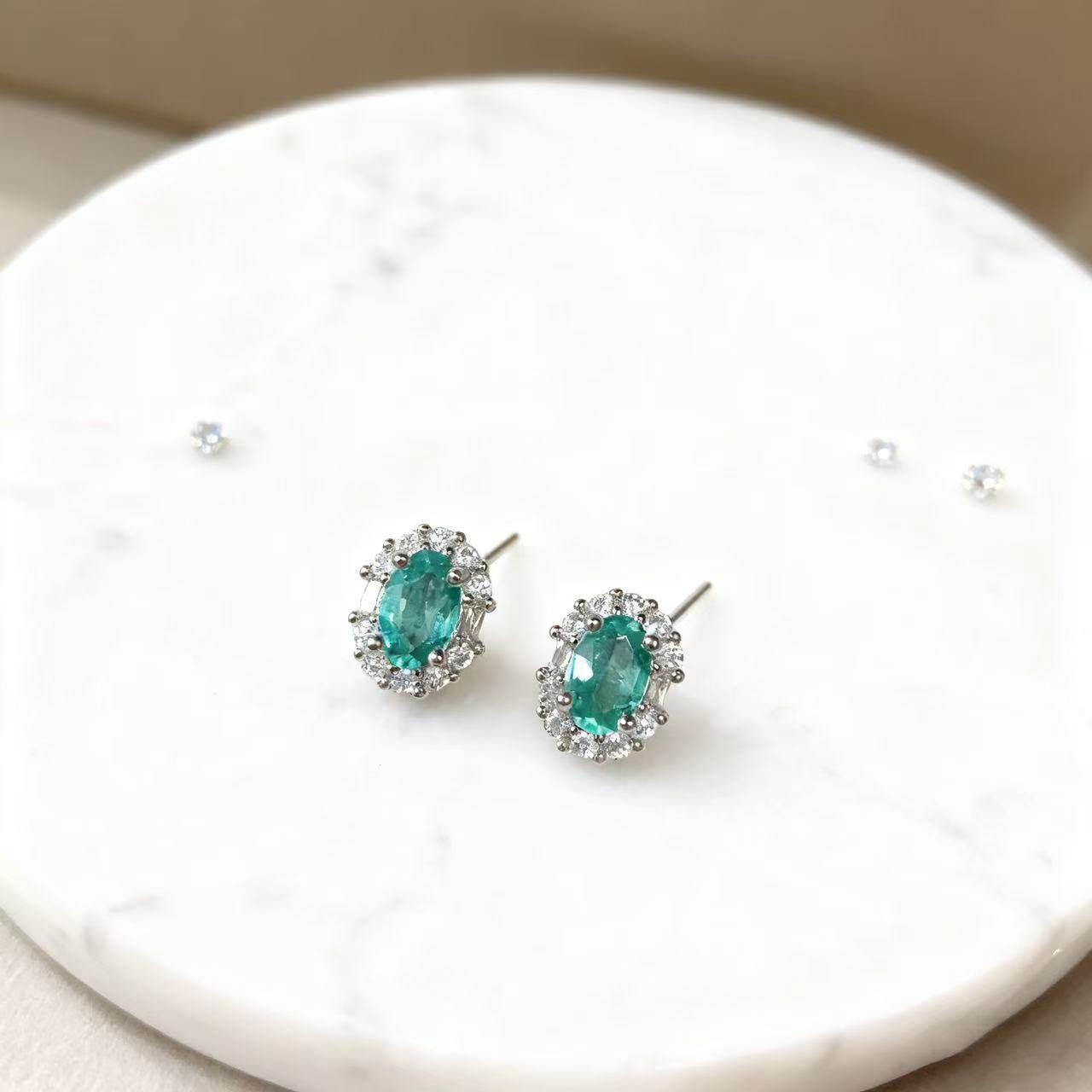 彩色猫眼石银针耳钉套装女夏日圆脸养耳洞耳环小巧精致高级感耳饰