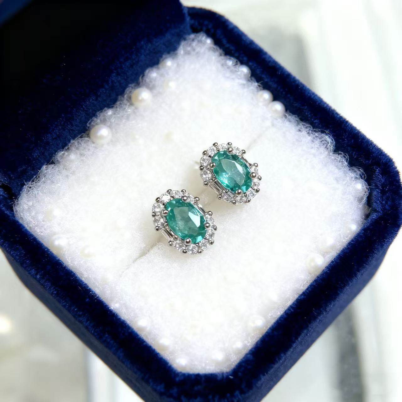 天然橄榄绿托帕石耳钉女925银针简约个性百搭小清新设计感