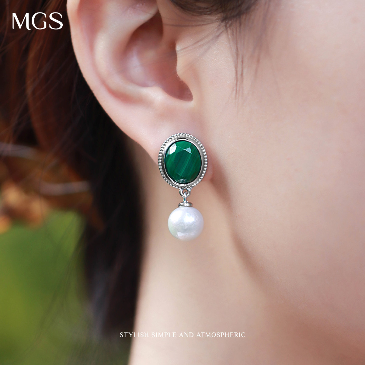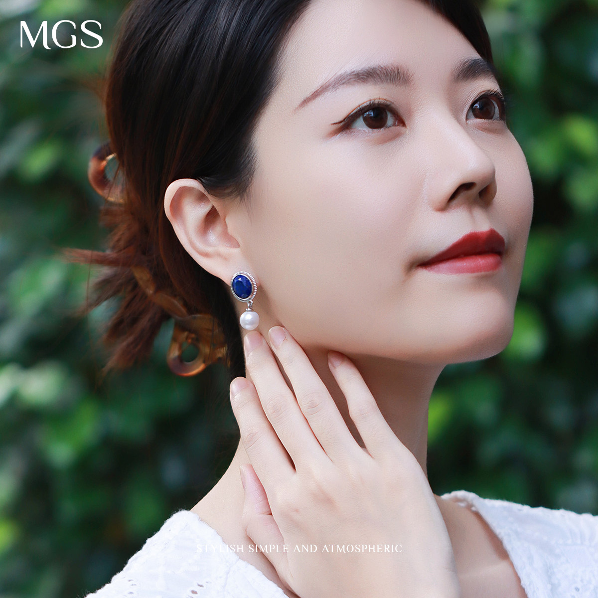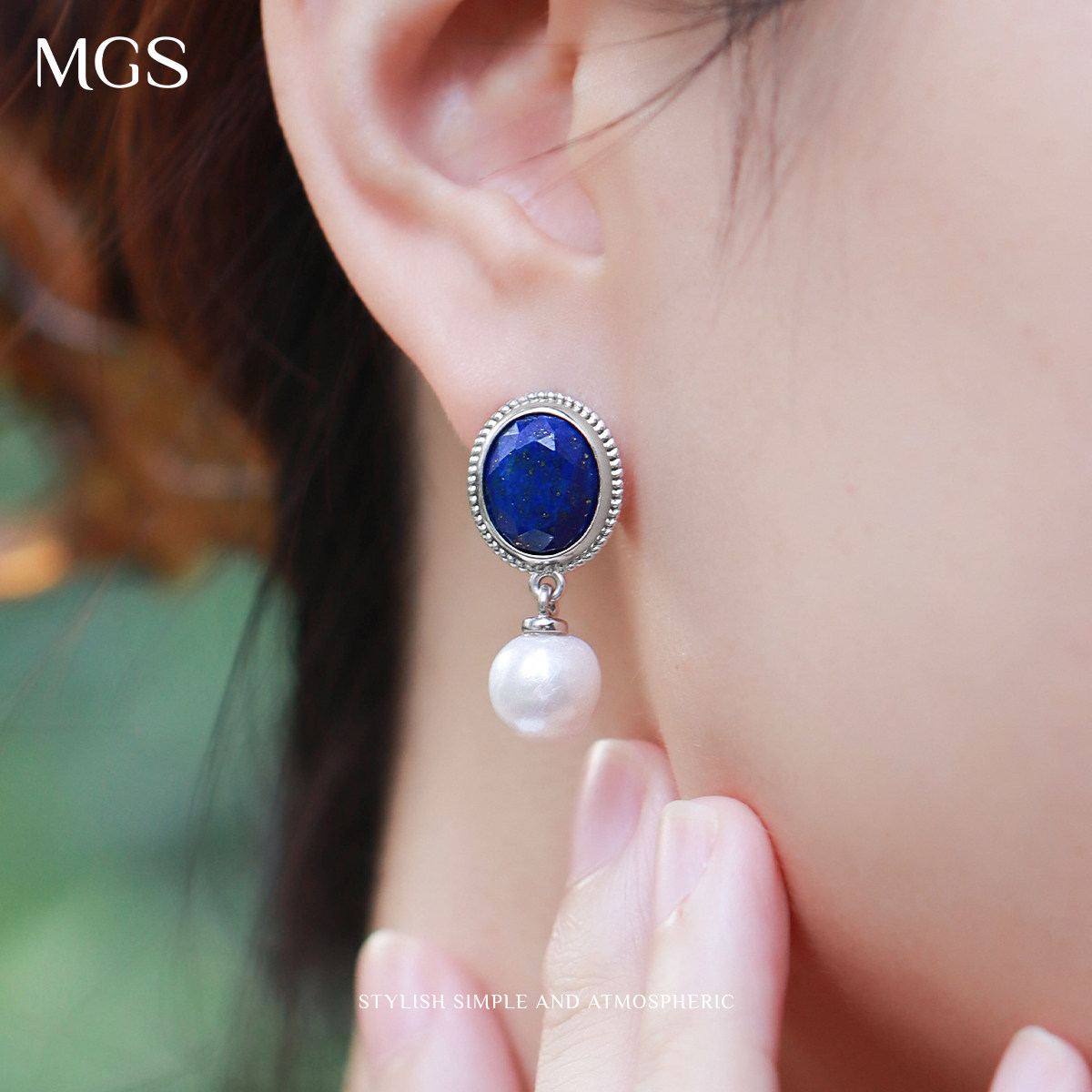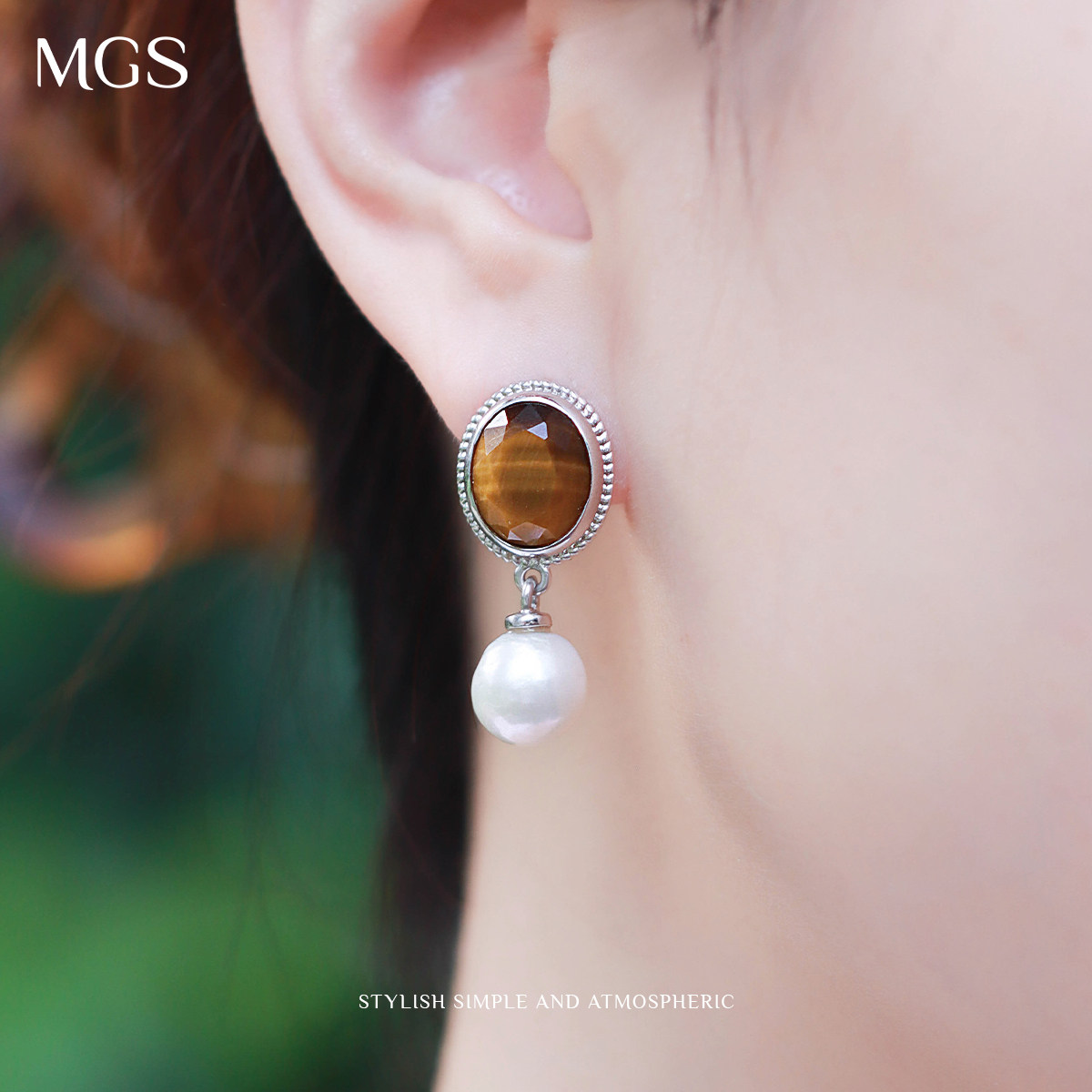 MGS/曼古银织梦耳环复古时尚轻奢珍珠S925银耳环孔雀虎眼青金玉石