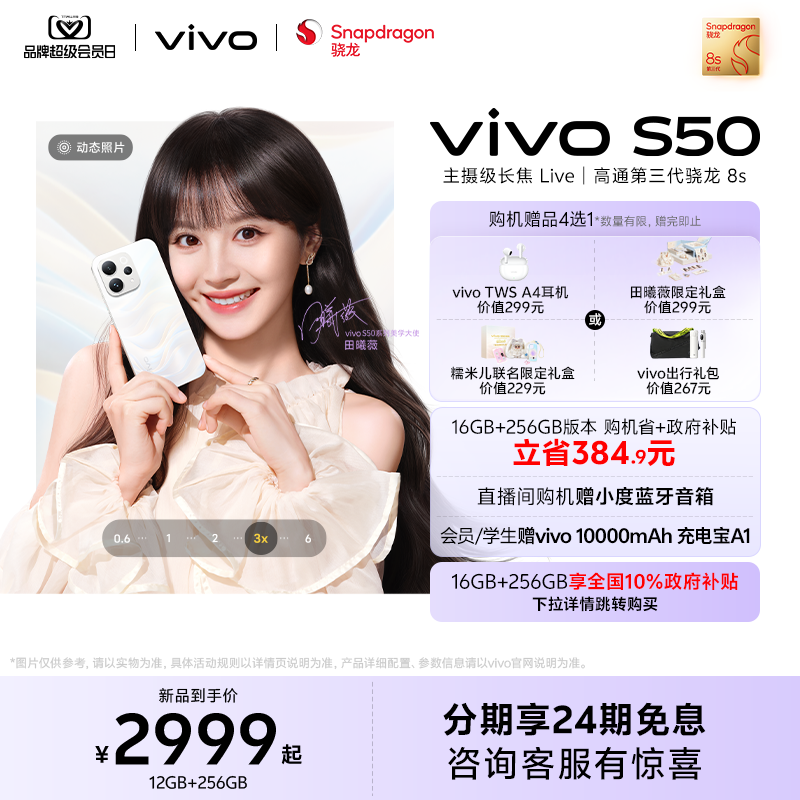 【新品上市 田曦薇同款】vivo S50 超声波指纹 拍照新款学生手机官方旗舰店正品官网新款s30