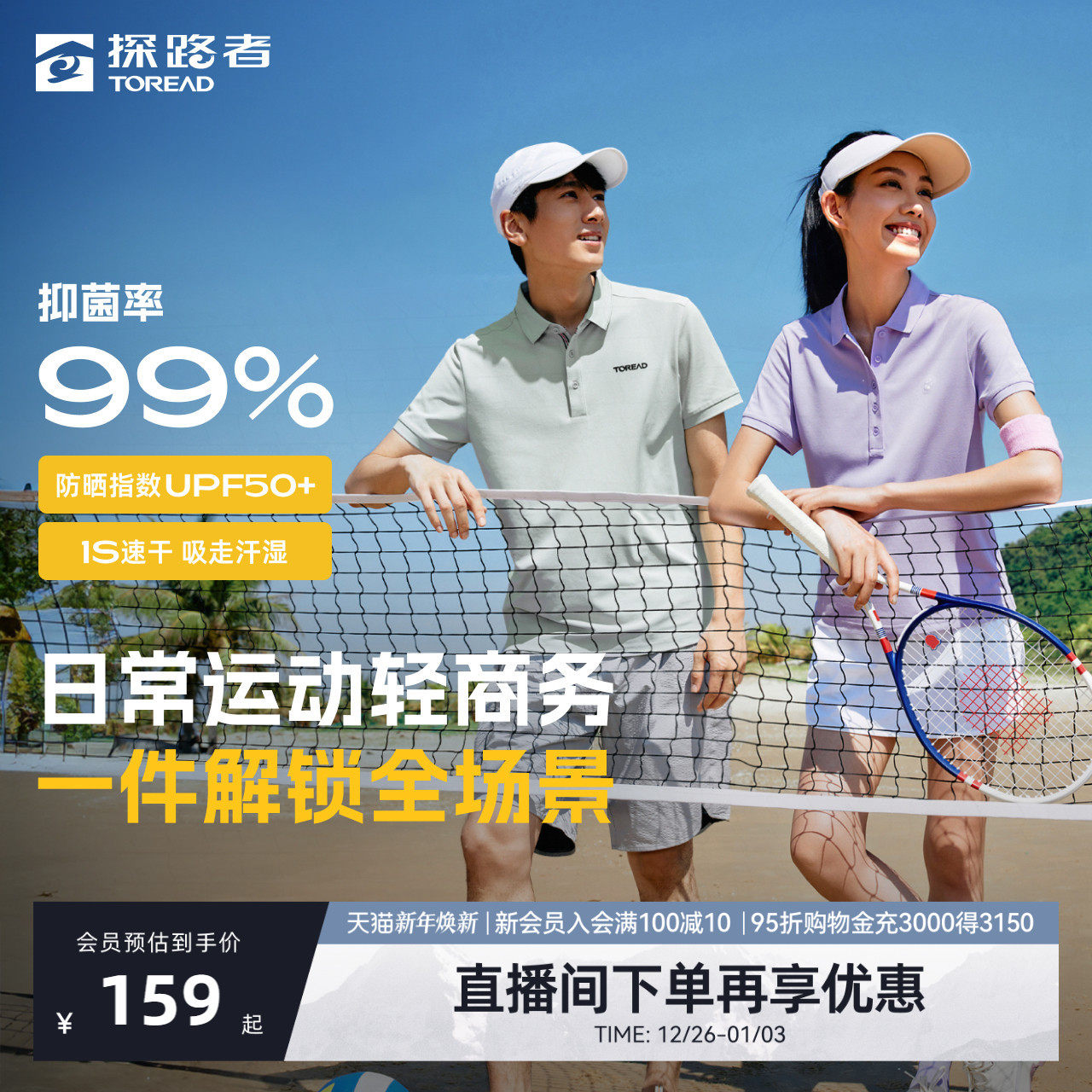 【探氧】探路者短袖男2025春夏情侣POLO衫防晒速干透气弹力T恤女