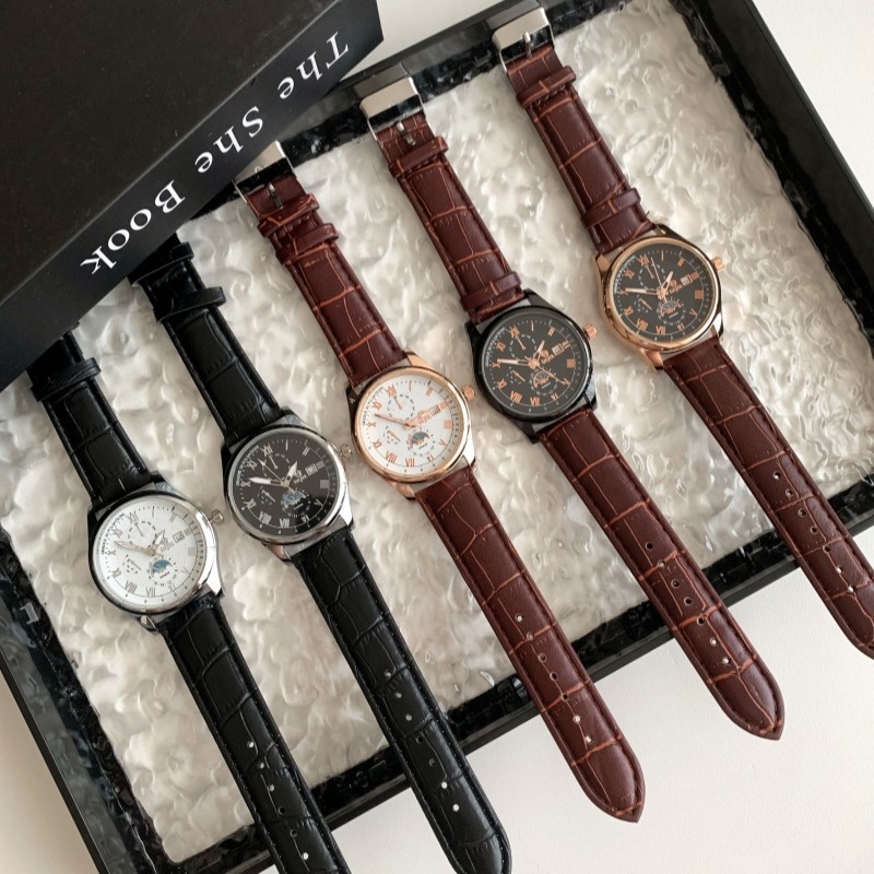 休闲时尚气质瑞士男士手表防水商务皮带石英手表男士日历腕表套装