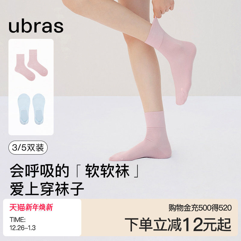 ubras蚕丝隐形袜7A抗菌袜子女船袜防滑不掉跟中筒袜透气3/5双秋冬