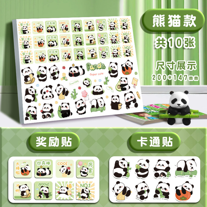 熊猫卡通奖励贴纸女孩儿童奖励可爱圆形小红花励志贴纸幼儿园小朋友颜值高手账装饰奖励贴纸小学生表扬星星