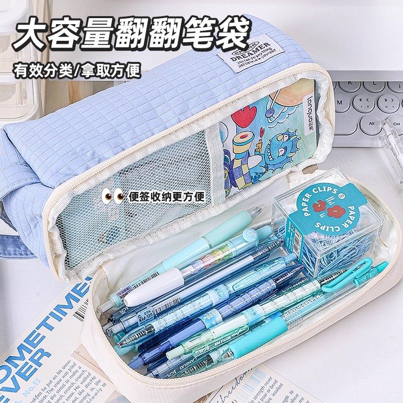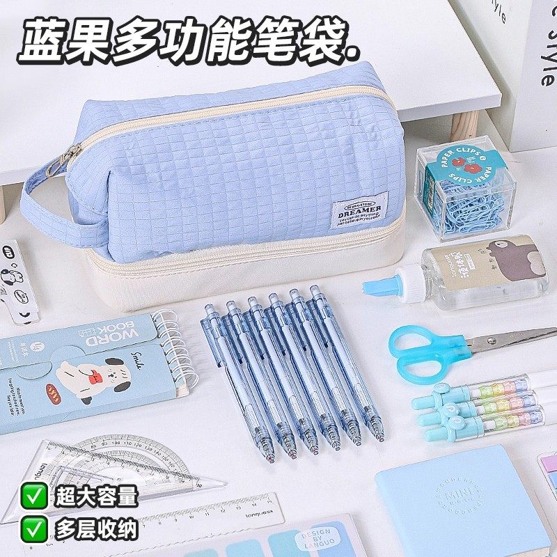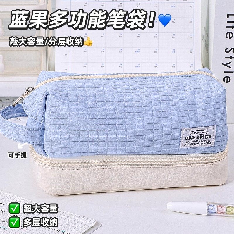 蓝果大容量多功能笔袋2026新款初高中生学习考试专用铅笔袋ins日系高颜值文具盒女孩多层收纳有效分类收纳袋