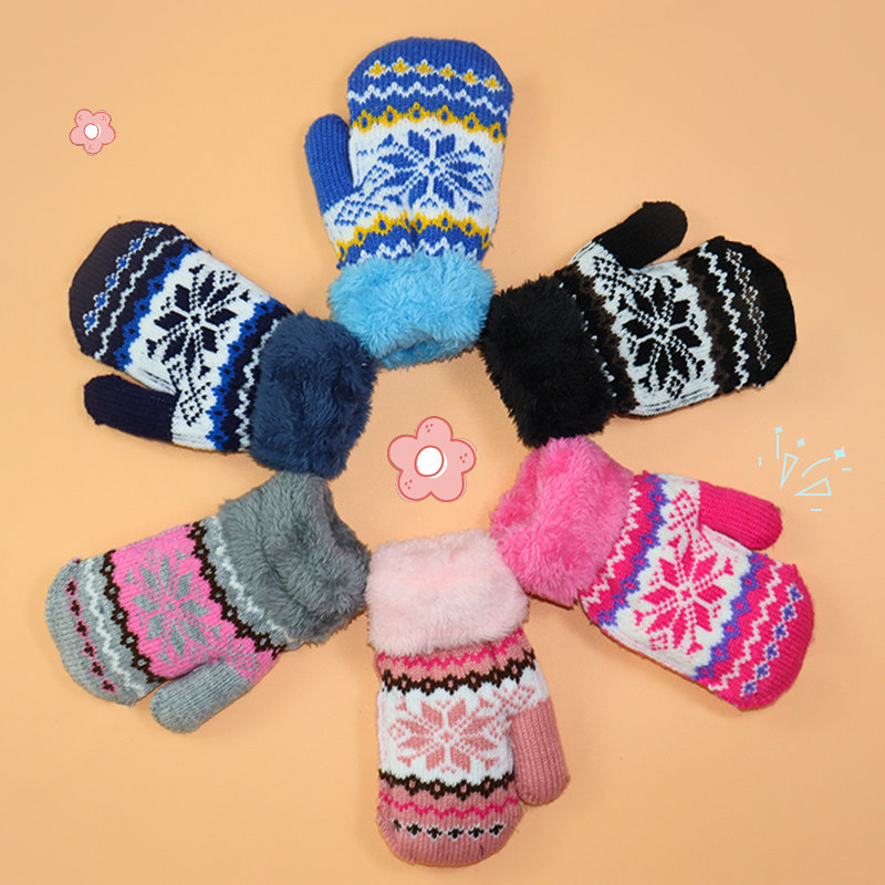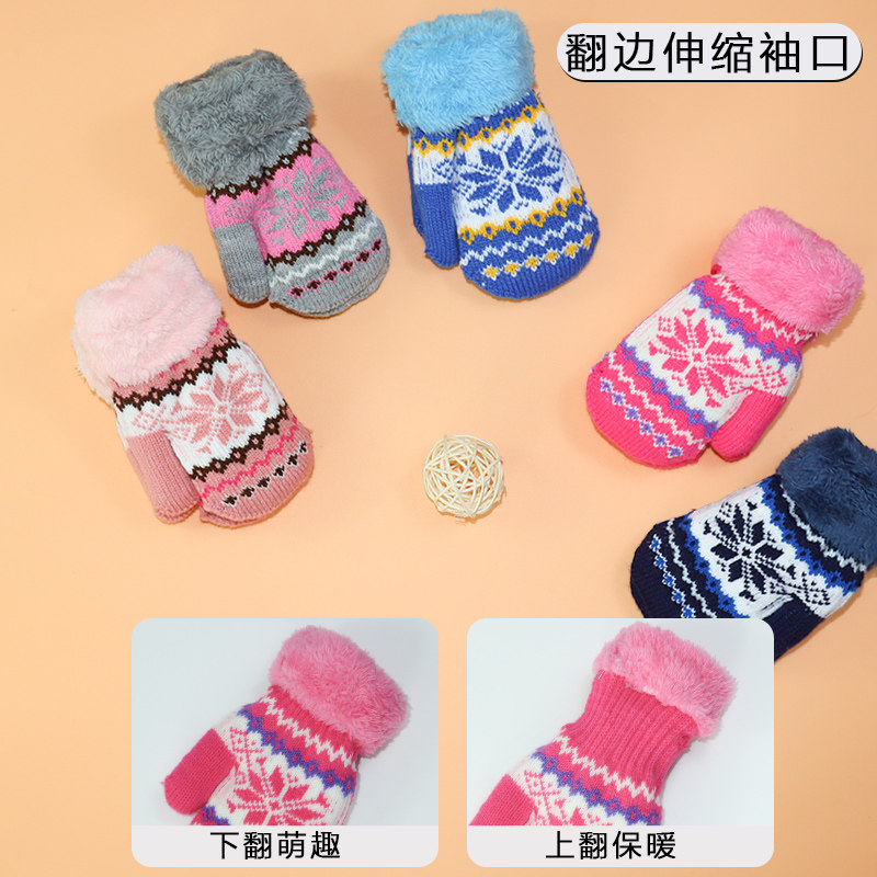儿童宝宝手套冬季男孩加绒加厚双层小孩女童幼儿园保暖针织连指