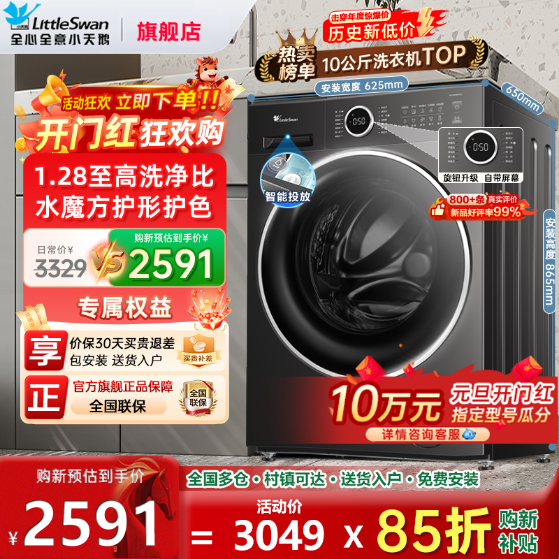 小天鹅洗衣机水魔方滚筒全自动家用10公斤洗烘一体官方旗舰店628