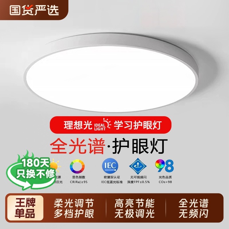 长城全光谱卧室主灯led吸顶灯新款圆灯现代简约书房儿童房间灯具