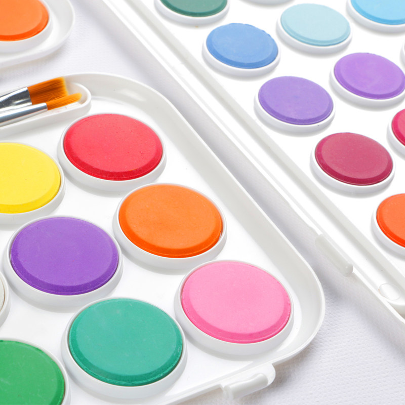 儿童水彩单盒21色固体水彩颜料套装便携式水彩画颜料盒画笔绘画套装蘸水即画12色水彩粉饼美术用品彩色幼儿园