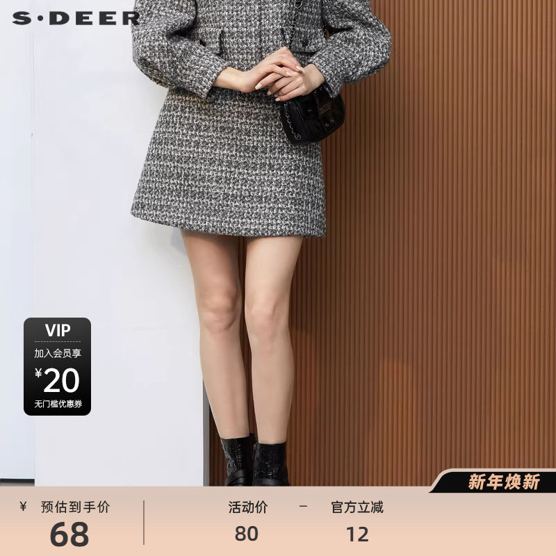 【sdeer奥莱】圣迪奥女装秋OL风套装针织格纹A字包臀裙S223Z1329