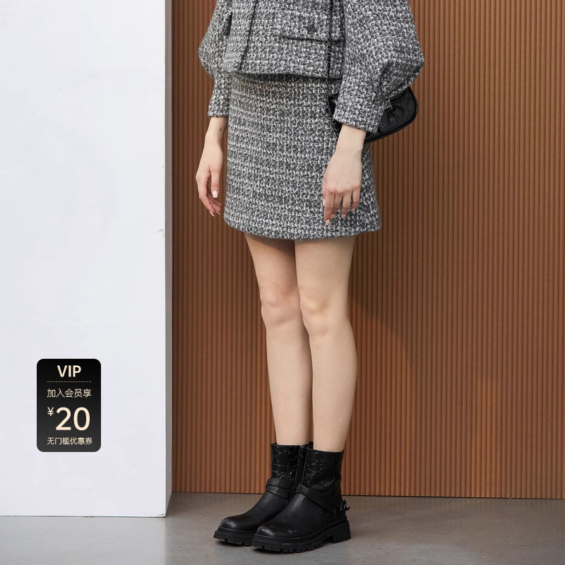 BANANA BABY2025年冬季新款复古格纹半身裙女高腰小个子时尚短裙