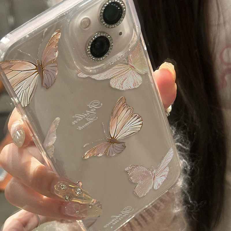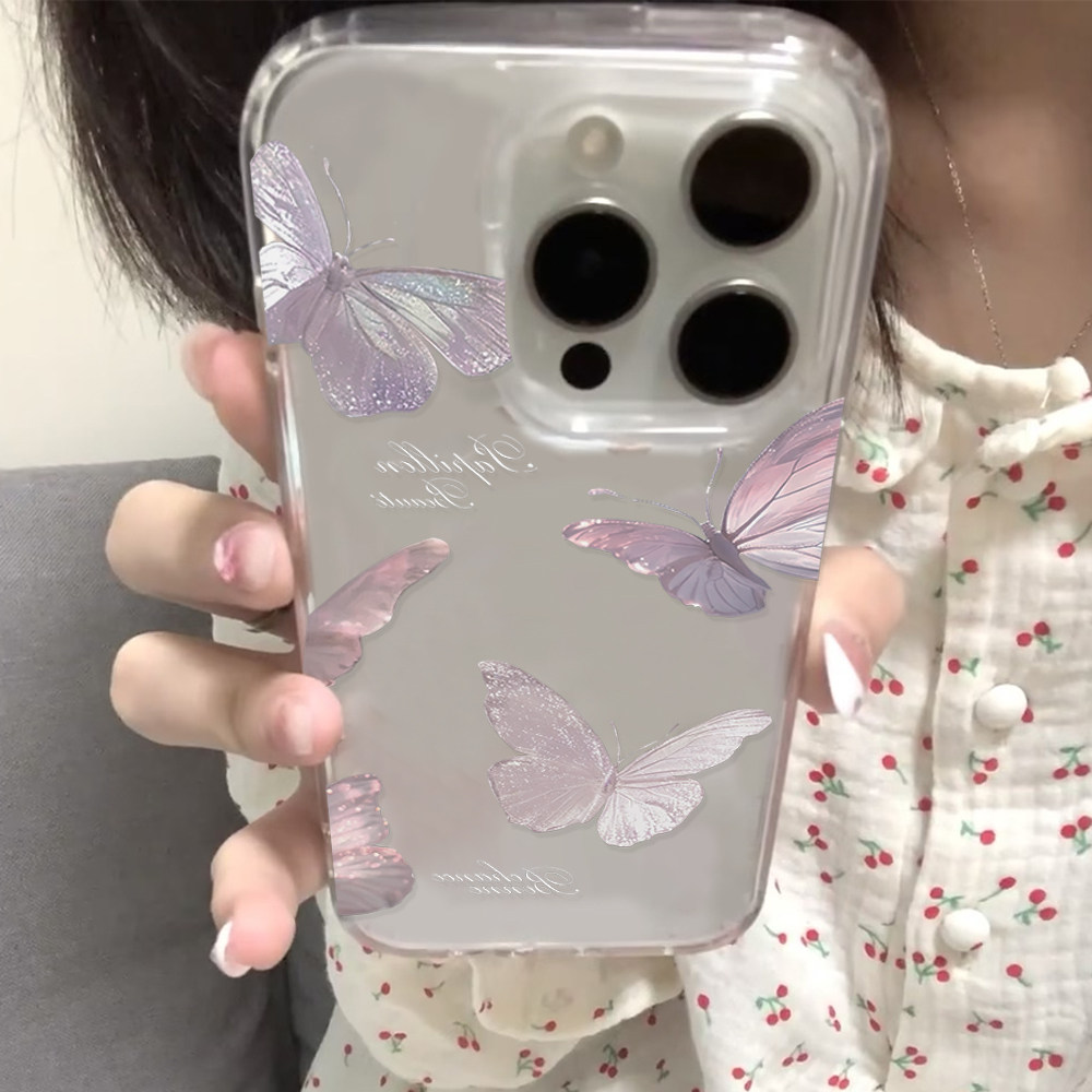 ins梦幻渐变蝴蝶手机壳适用iPhone17promax全包透明苹果14韩系13少女12防摔XR保护壳16软套15文艺小清新甜美