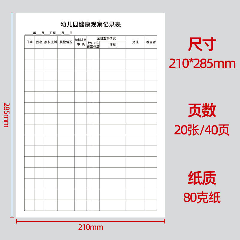 A4幼儿园健康观察记录本学生幼儿全日身体健康体检情况登记表定做