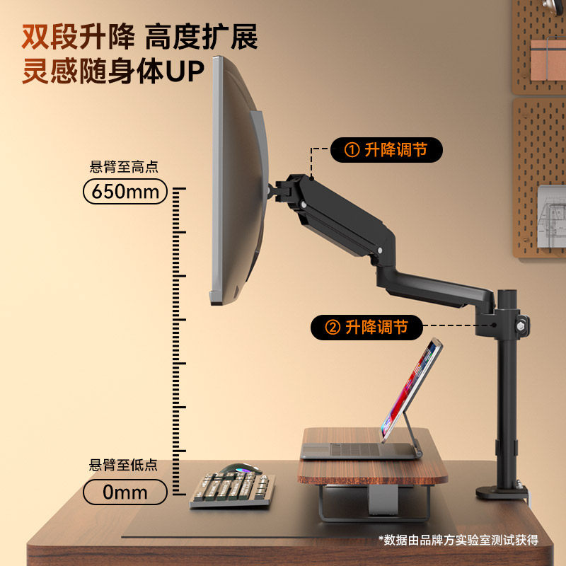 倒装显示器支架夹式书柜吊挂气压机械臂拉伸旋转屏幕吊顶悬挂托架
