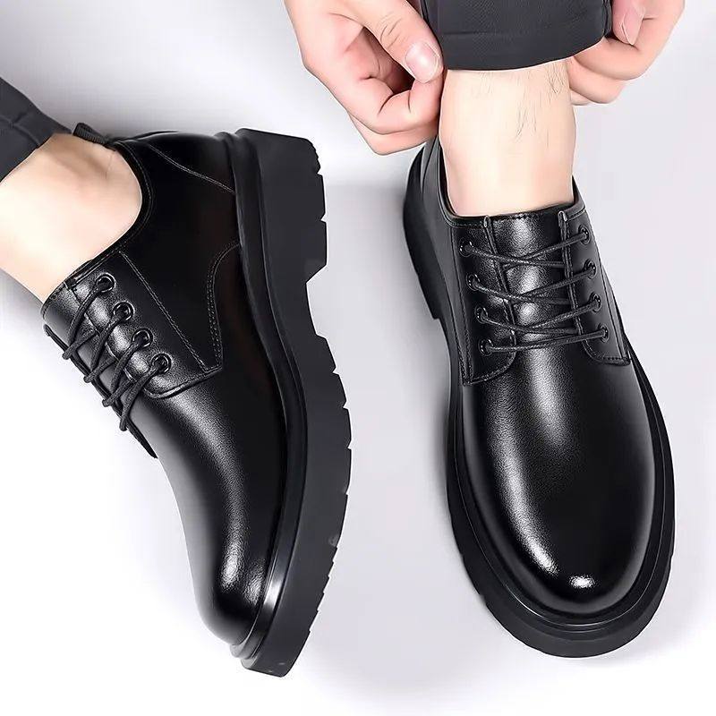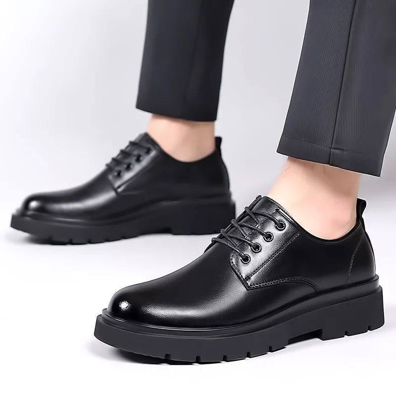 皮鞋男款高级感厚底增高英伦通勤大头德比鞋男冬季新款低帮马丁靴