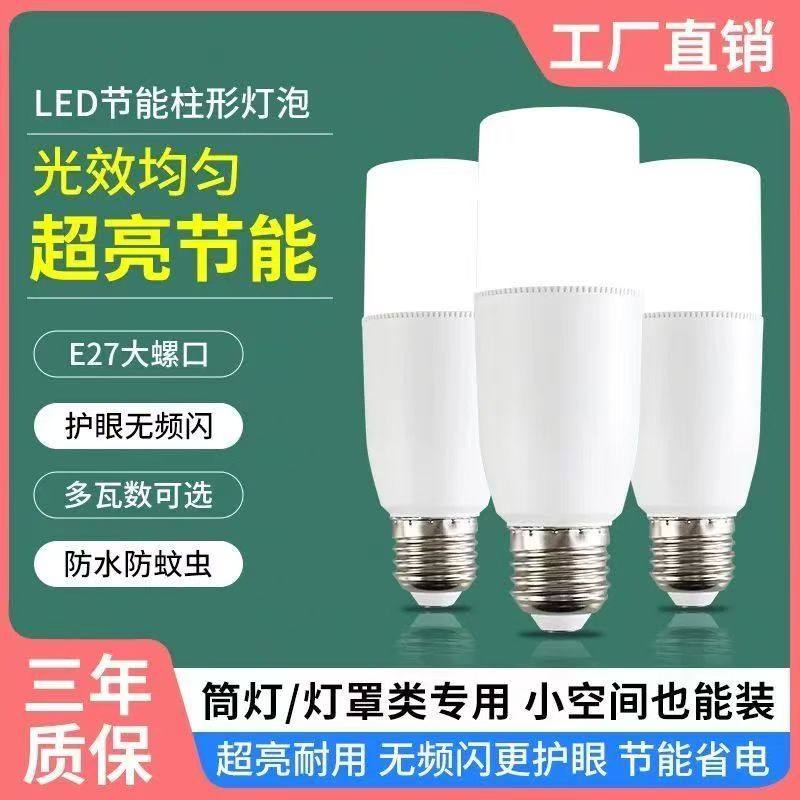 led灯泡超亮节能灯白光家用省电E27大螺口客厅室内灯照明圆柱形灯