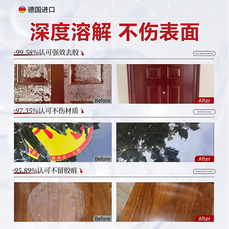 德国强力除胶剂家用万能溶解去胶清除剂汽车玻璃胶带粘痕开荒保洁