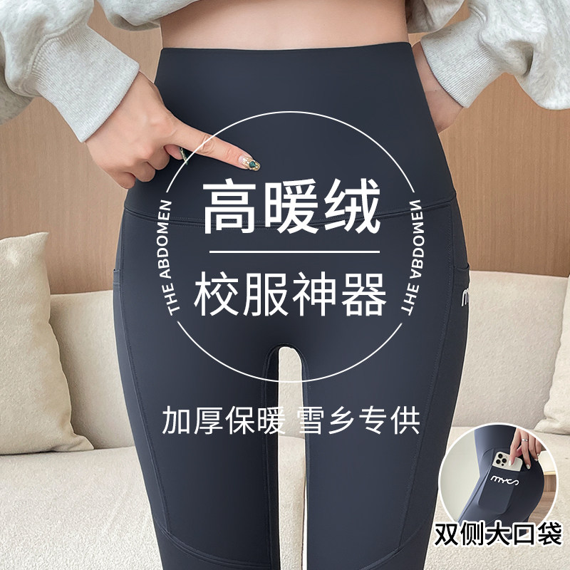 2024新款秋冬加绒加厚口袋鲨鱼裤女外穿打底裤收腹提臀高腰瑜伽裤