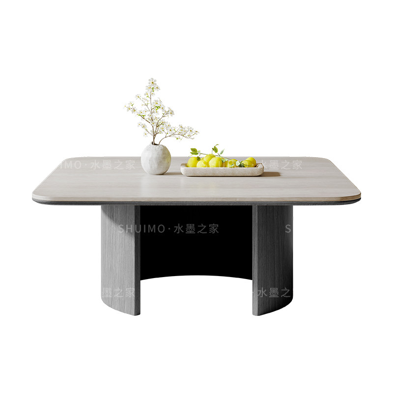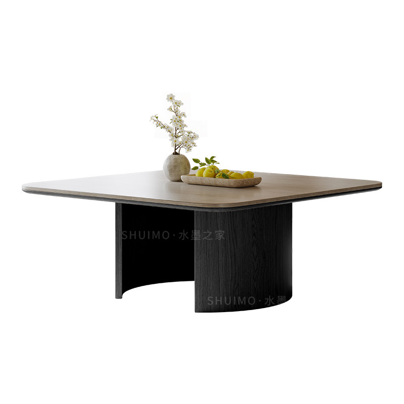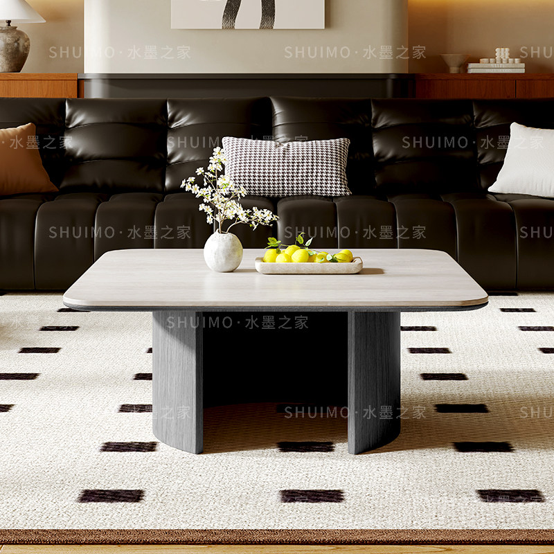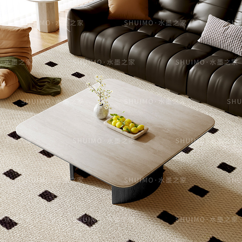 德利丰侘寂风洞石岩板茶几方形客厅小户型设计师中法式复古风艺术