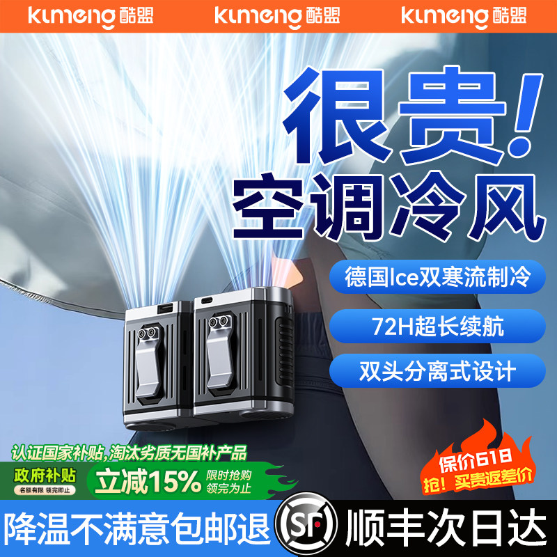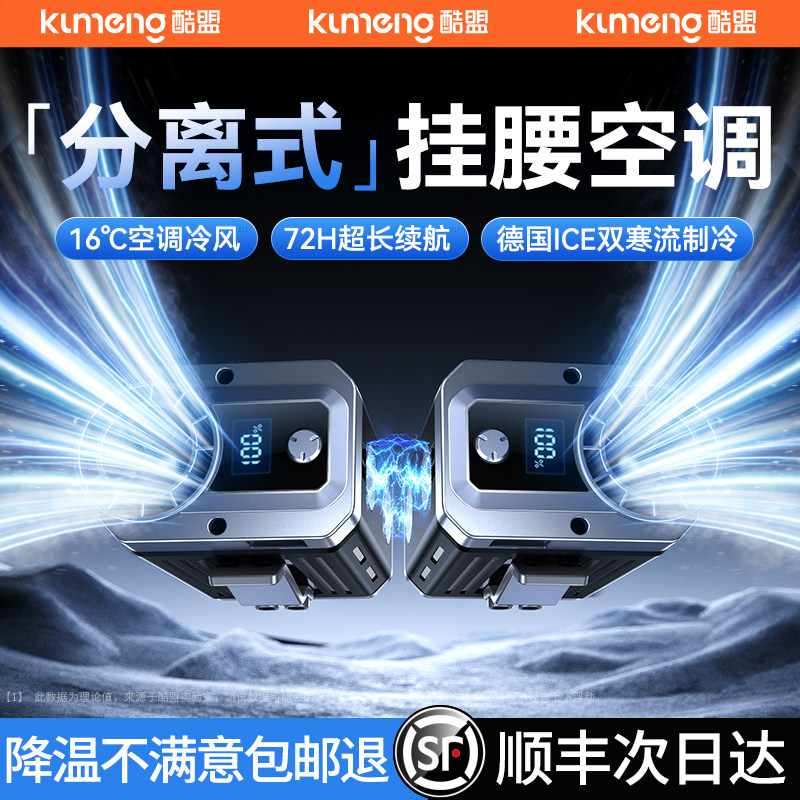 2025新款挂腰风扇制冷超长续航强力充电小风扇挂脖随身便携式夹腰空调降温神器高温户外骑行工地夏天厨房桌面