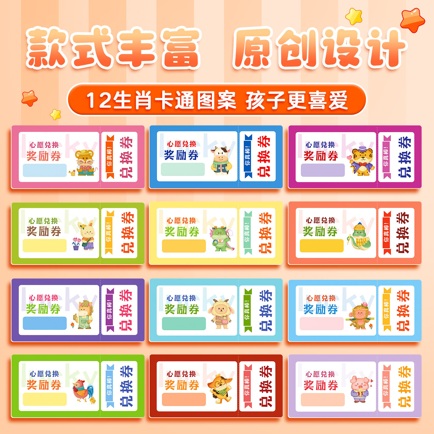 小学生奖励兑换券班级创意抽奖券奖励孩子的积分卡礼物兑换卡儿童学习心愿卡班主任老师管理神器奖励印章贴纸