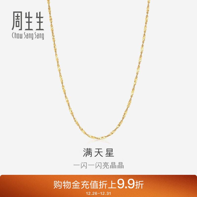 周生生18K黄色黄金满天星项链百搭素链锁骨链03817N