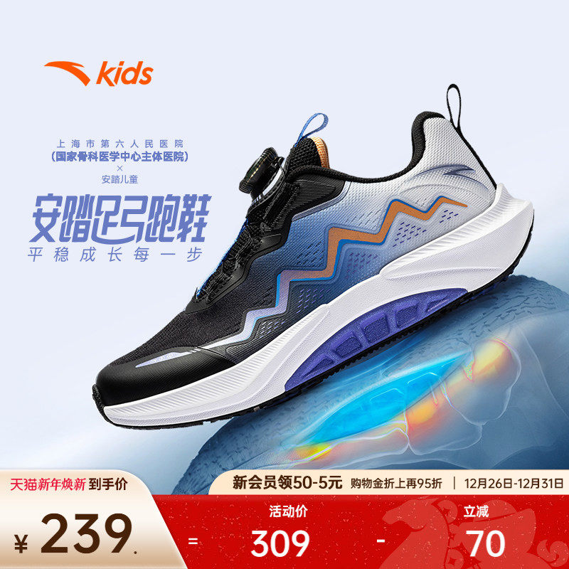 安踏足弓|童鞋男大童跑鞋2025冬季季新款儿童跑步运动鞋旋钮鞋子