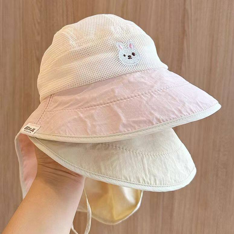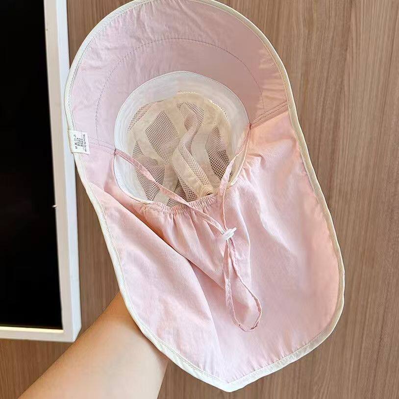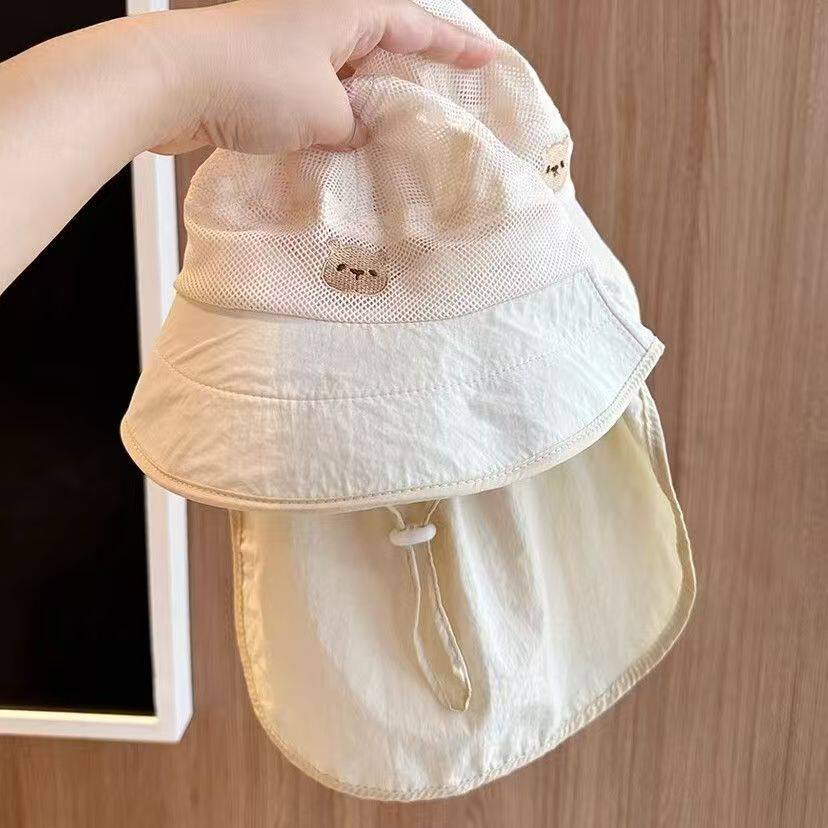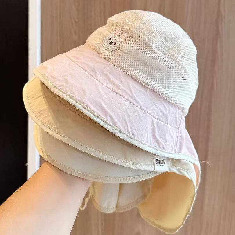 婧麒宝宝帽子夏季薄款透气网眼带披肩防晒帽男女童出游护脖遮阳帽