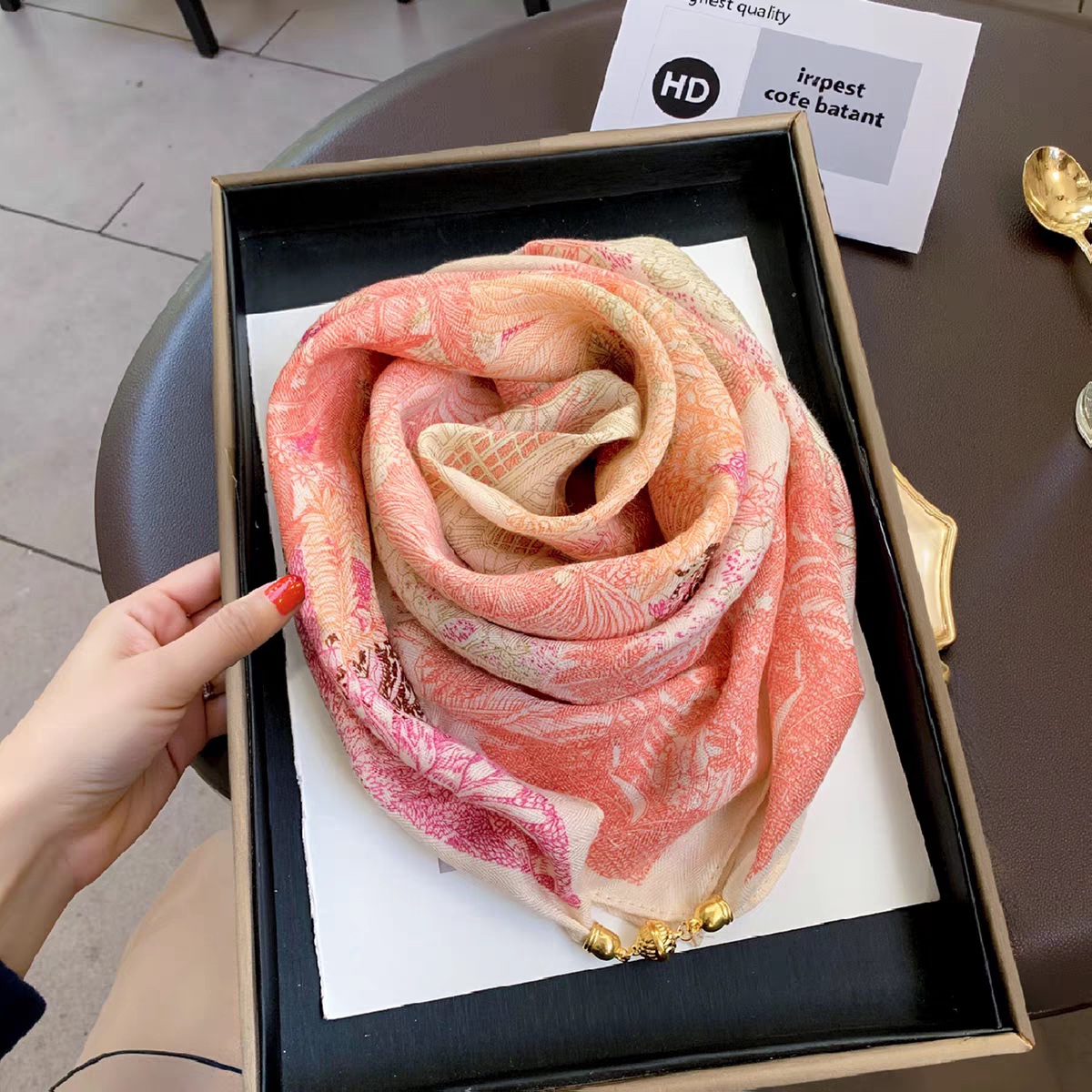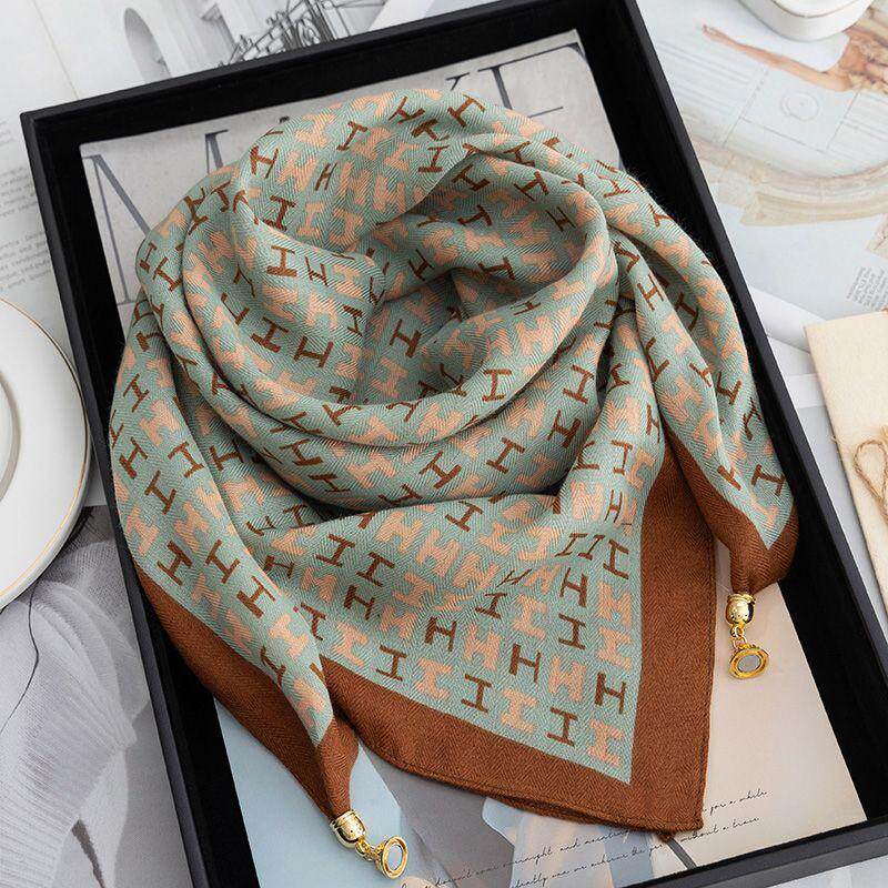 磁吸扣棉麻方巾新款春季秋三角围巾丝巾护颈高级时尚穿搭围脖百搭